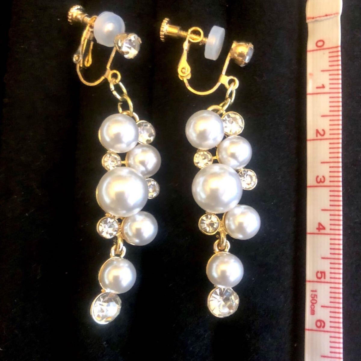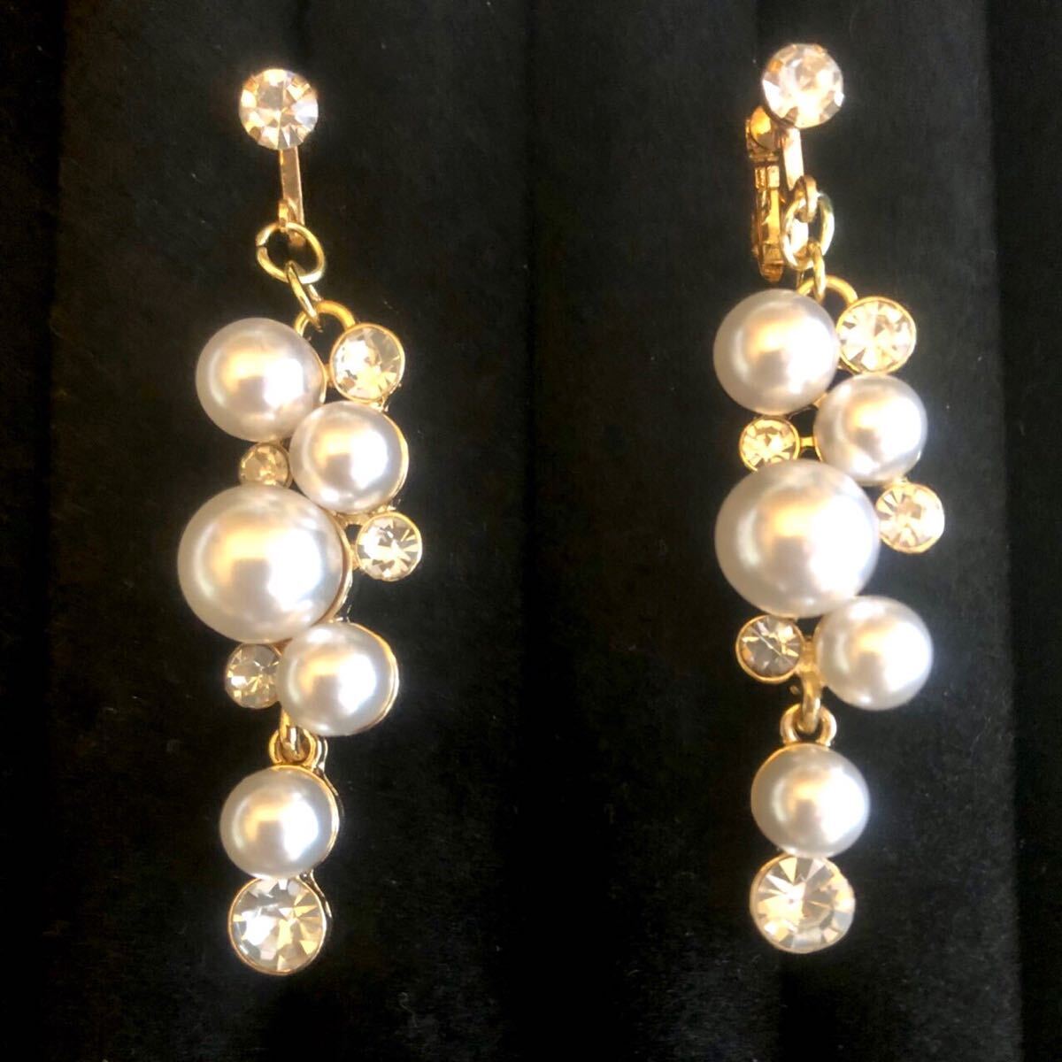 フェイクパール ヨーロッパ風 ラインストーン ビジューデコレーション イヤリング◎ パーティー お呼ばれ お色直し ブライダル