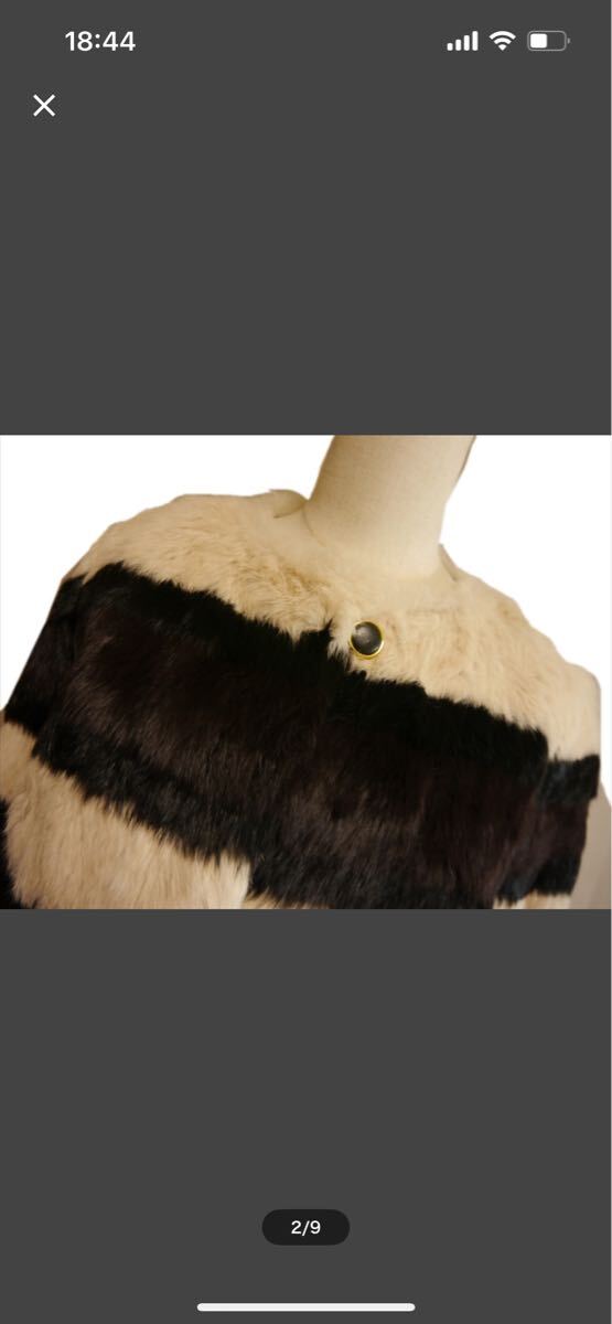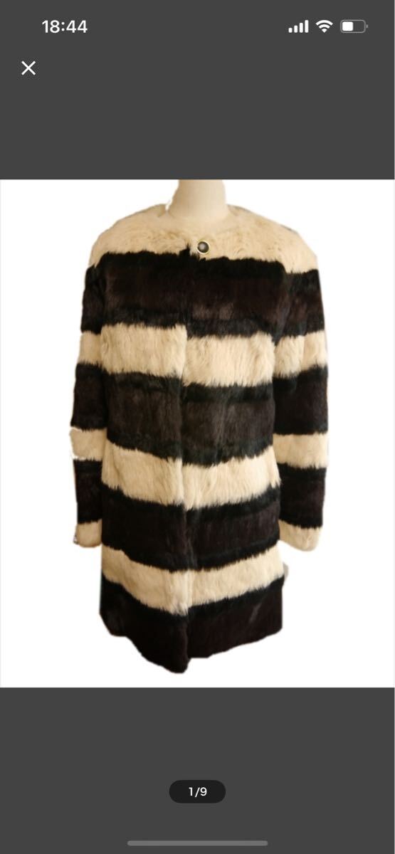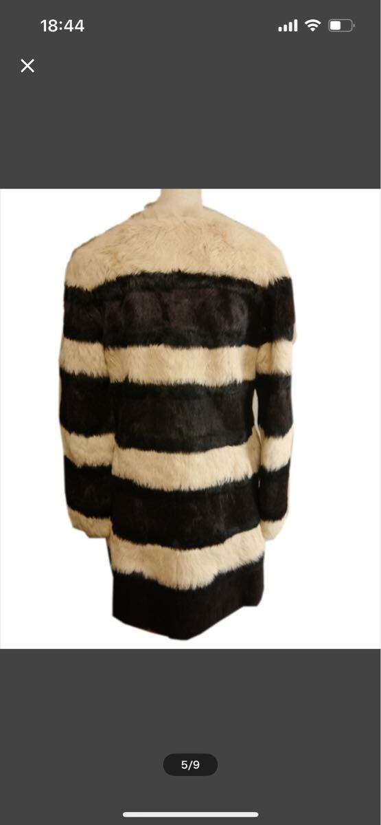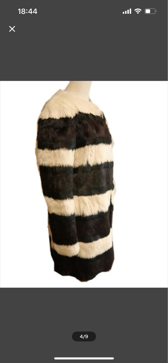 極上品 トリーバーチ ジャケット コート ロング ファー ラビット ボーダー ブラウン ブラック クリーム レディース