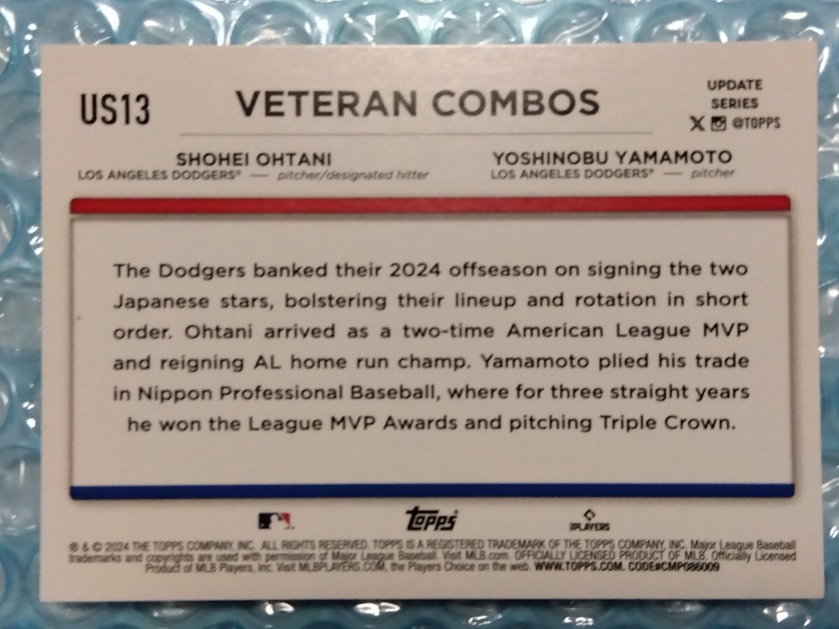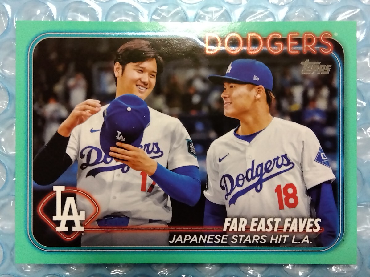 ロサンゼルスドジャース所属、大谷翔平選手と山本由伸選手のコンボカードのアクアパラレルになります。