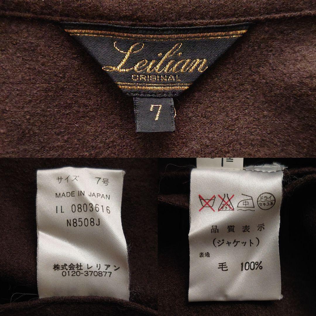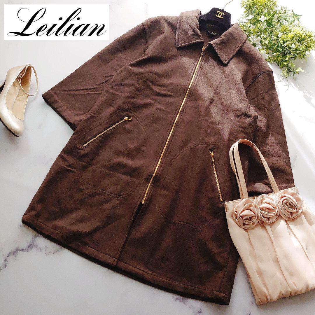 Leilian レリアン ウール100% チェスターコート S相当 サイズ7 ロング ジャケット 茶 ブラウン 長袖 毛 ウール アウター ジップアップ ゴールド金具 襟付き レディース
