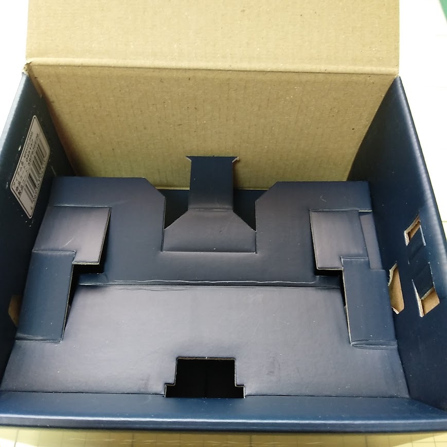 発送時、サイズ制限がありますので、箱をたたみ、それをビニール封筒に入れての簡易梱包配送となります。折れ防止に段ボールシートを一枚入れさせていただきます。