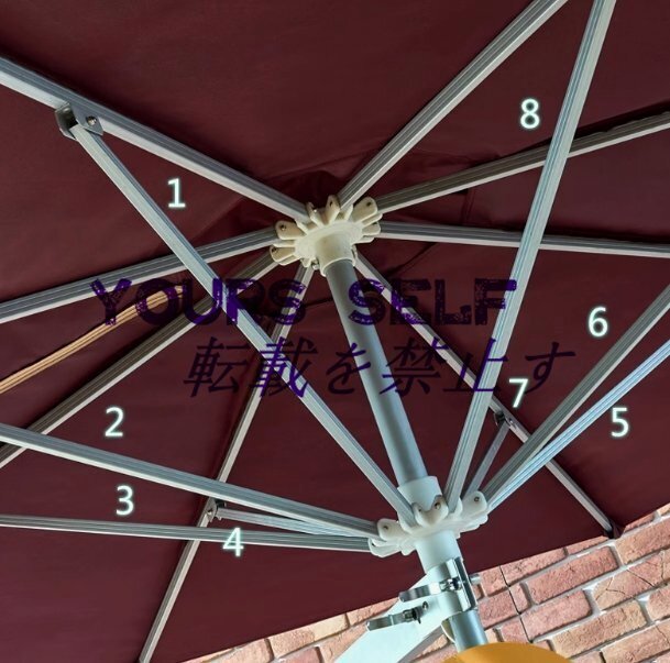 本体は、耐久性があり、変形しにくい高品質のアルミニウム合金素材で作られています。 。 8本のリブ、丸みを帯びたデザイン、強力なサポート力、広いシェーディングエリアを備えています。