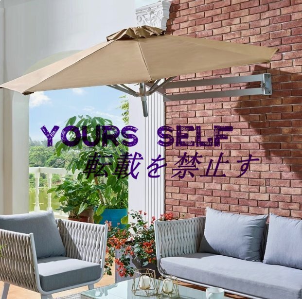 2.5m円形、壁掛け、折りたたみ式、ガーデン傘、角度調整可能、アルミニウム合金、裏庭の屋外、庭、テラスに適しています