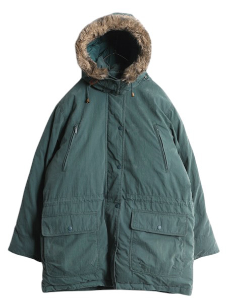 商品名 | 90s エルエルビーン ダウン ジャケット レディース M / オールド アウトドア 脱着 ファー付き フード パーカー ハーフ コート ブルゾン 緑 |
