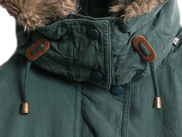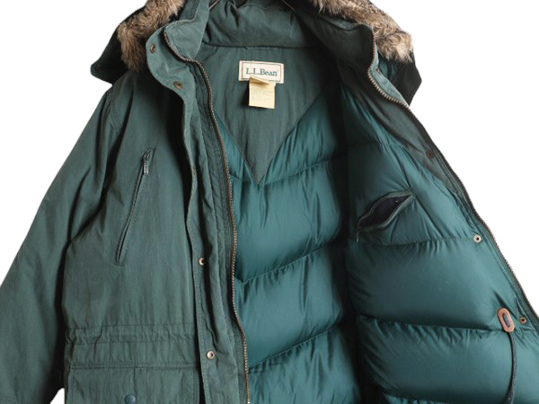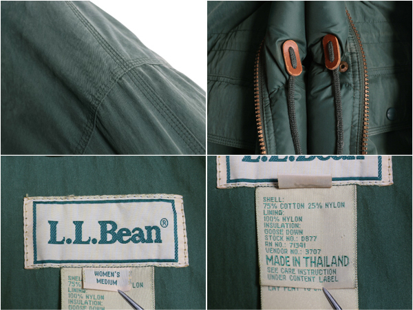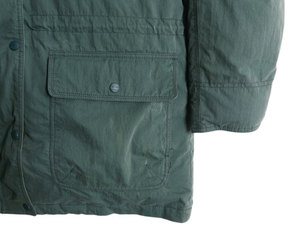 90年代のオールド L.L.Bean の ダウンジャケット です。 素材は、SHELL : 75% COTTON : 25% NYLON タフに使用できるコットン強めのマットな質感の素材 LINING : 100% NYLON 肌触りの良いナイロンリップストップライナー INSULATION : 100% GOOSE DOWN グースダウンがしっかりと詰まった 軽く、防寒性、防風性、保温性の高い商品 ハイネックタイプ、襟を高く設定することによって 首周りの保温力も高くなっています。 フードのフェイクファーは、ジップで脱着可能 フロントは、ブランドロゴ刻印入りのスナップボタンと YKKダブルジップの二重構造 両胸にジップ付きポケット 両サイドにハンドウォーマーポケットとフラップポケット フード、ウエスト内側には 防風効果と、体温を逃がさない為の本革レザーのストッパー付き 袖は、防風性を高める内リブ付き 合わせやすいグリーン オールドエルエルビーンらしいグッドカラー 欠損しがちなフードが付く、大変希少な完品 老舗アウトドアブランドの手掛けた確かなつくり 時代に左右されないオーセンティックなグッドデザイン 長く愛用できる商品です。 |