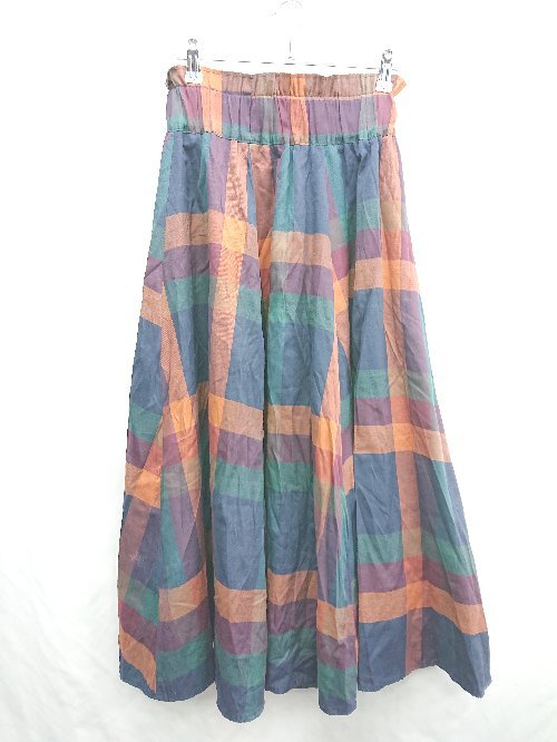 ◇ ⊇ ノーブランド チェック柄 ロング ギャザー スカート サイズF オレンジ ネイビー グリーン レディース E