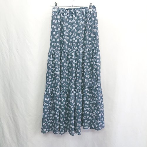 ◇ Θ Khaju カージュ 花柄 ロング フレア スカート サイズF グリーン系 レディース E