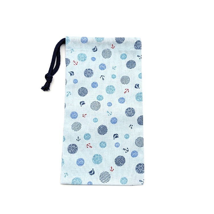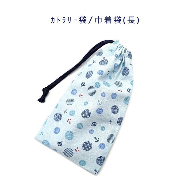 カトラリー袋・巾着袋 長方形【マリン ドット柄 ブルー】カトラリーケース 箸袋 はし袋 コップ袋 給食袋 ポーチ 海 ヨット 碇 いかり