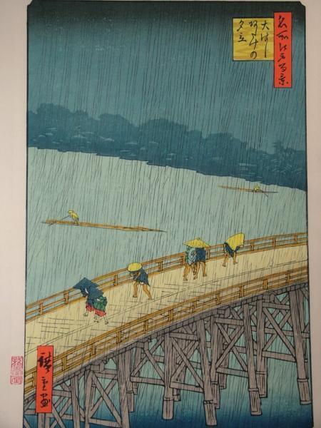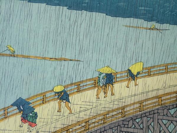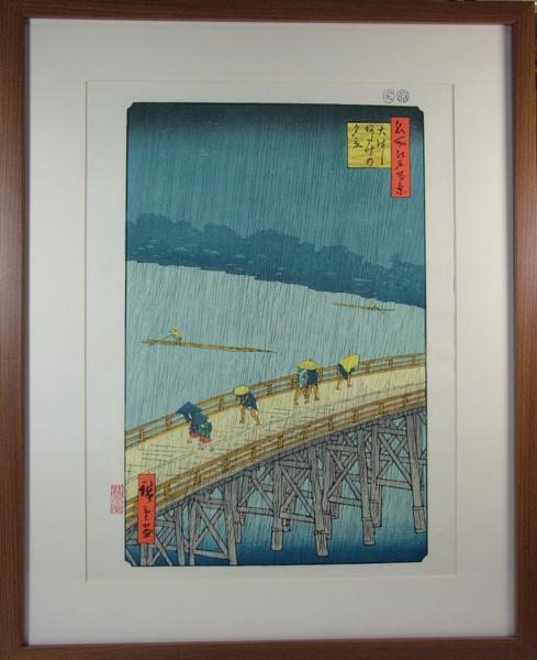 | ▲▽■龍香堂■ 復刻木版 広重『大はしあたけの夕立』(船二艘)額装△▼ | ||