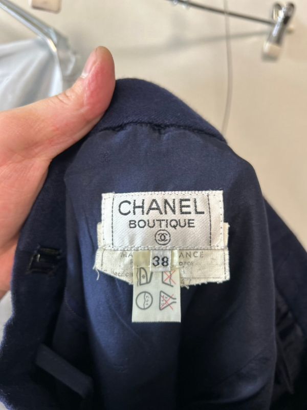 AB(多少の使用感程度コンディション。ボタン糸ゆるみあり。上下ともにCHANELですが型番が異なります。)