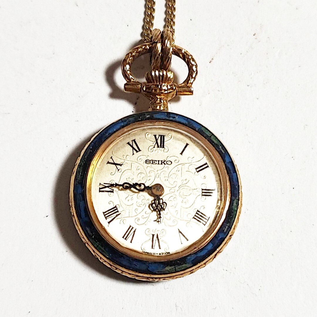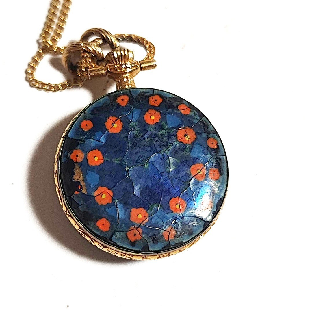 手巻き時計です。ペンダントとなっております。時刻移動、ねじ巻きできています。 裏側の塗装にヒビが入っています。配送の衝撃で剥げる可能性もあります。
