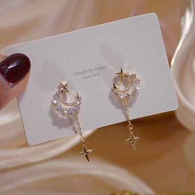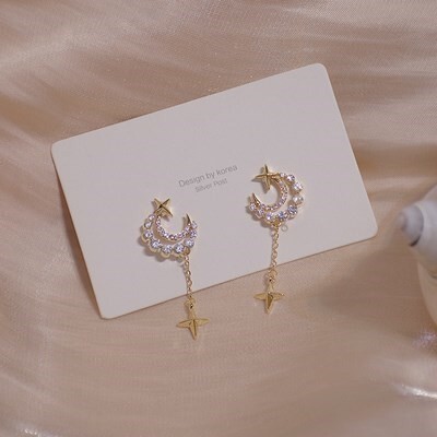 ピアス S925針 ムーン 星 高級 月 ファッション レディース クリエイティブ デザイン ジュエリー 高品質 マイクロ象眼 ジルコン #C606-4