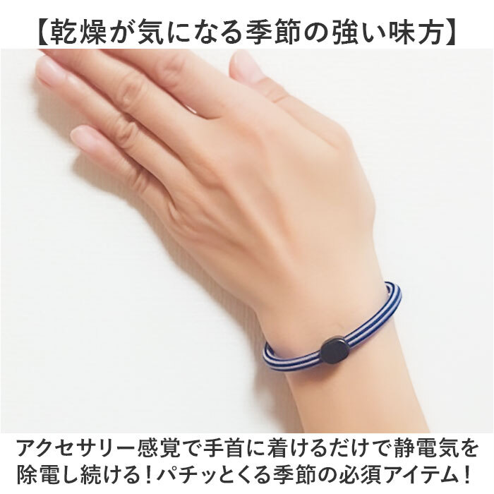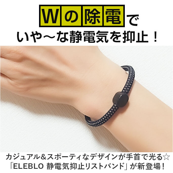 商品説明 | ・・【いや~な“パチッ”を感じにくい!】 ・カジュアル&スポーティなデザインが手首で光る☆「ELEBLO 静電気抑止リストバンド」が新登場! ・【乾燥が気になる季節の強い味方】 ・アクセサリー感覚で手首に着けるだけで静電気を除電し続ける!パチッとくる季節の必須アイテム! ・【静電気を防ぐELEBLOのヒミツ】 ・ゴム部分に高い静電気除去機能がある繊維を編み込み、肌と繊維が触れた箇所から静電気を除電。 ・※本製品は、完全に静電気を除去するものではありません。静電気の除電効果は、環境条件や使用状況により個人差があります。 ・【Wの除電で静電気リスクを軽減】 ・「空気中の静電気を寄せ付けない除電」と「物に触れたときに発生する静電気を抑制する除電」の2つの効果で、パチッとくるリスクを軽減。 ・【重ね着けで、静電気に負けない♪】 ・デザイン違いのELEBLOを2本同時に身に着けて、肌に触れる接触面を増やすと静電気抑止効果がUP! ・【男性も着けやすいカラーリング】 ・伸縮性の高い落ち着いたカラーのゴムに、明るい色彩の糸を緻密に編み込んだユニセックスデザイン。 ・【カップルでリンクコーデもOK!】 ・ノーマルサイズとLサイズの2サイズ展開なので、手首がっちりの男性には「Lサイズ」がオススメ。 ・【パチパチの前にELBLOにタッチ!】 ・空気の乾燥が気になる季節になったら・・・。ドアノブなどパチッとくる場所に触れる前にタッチ! |