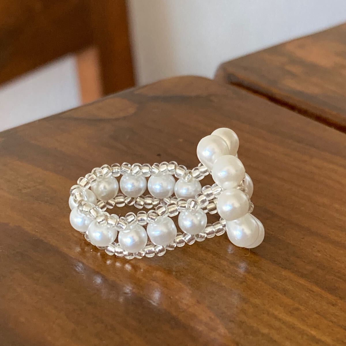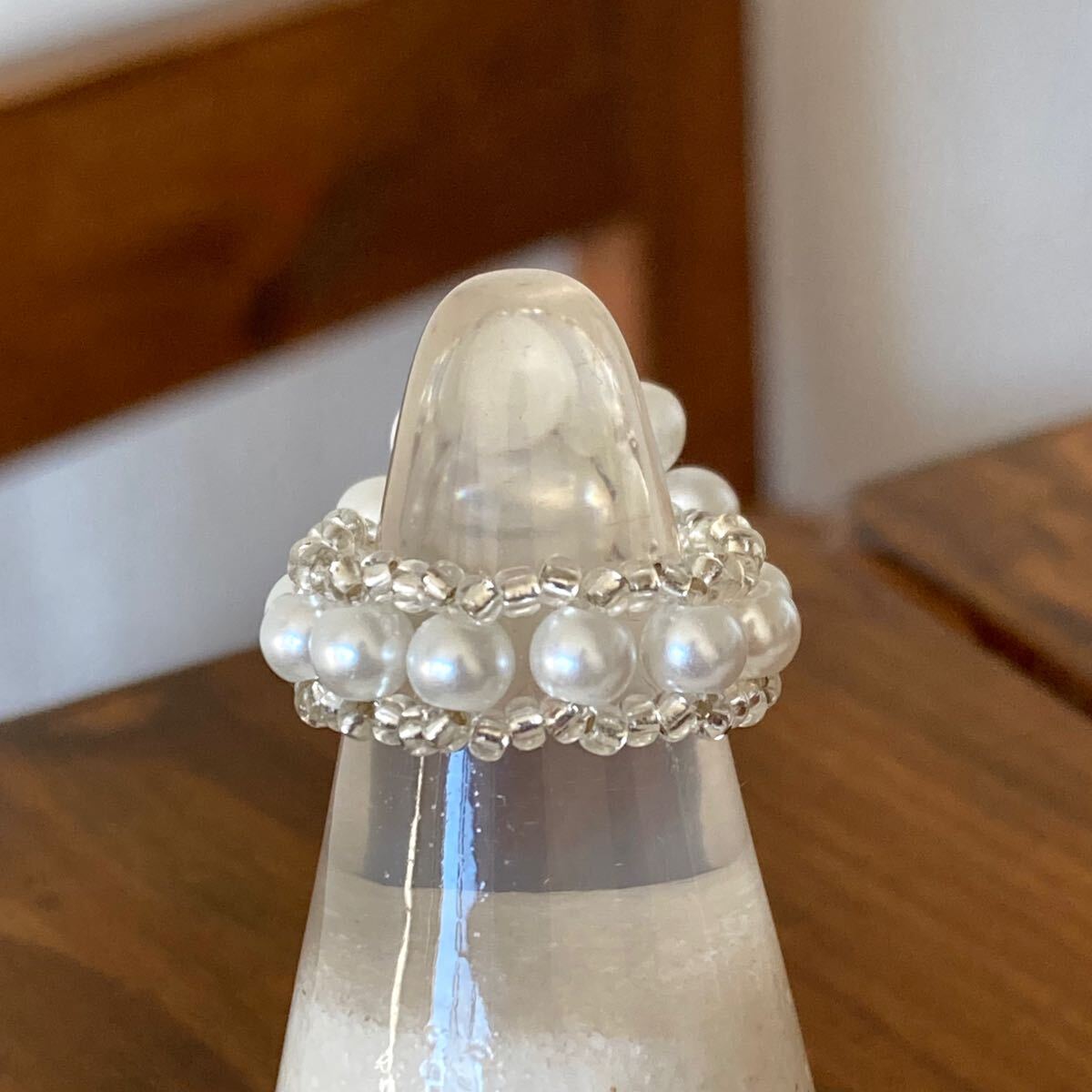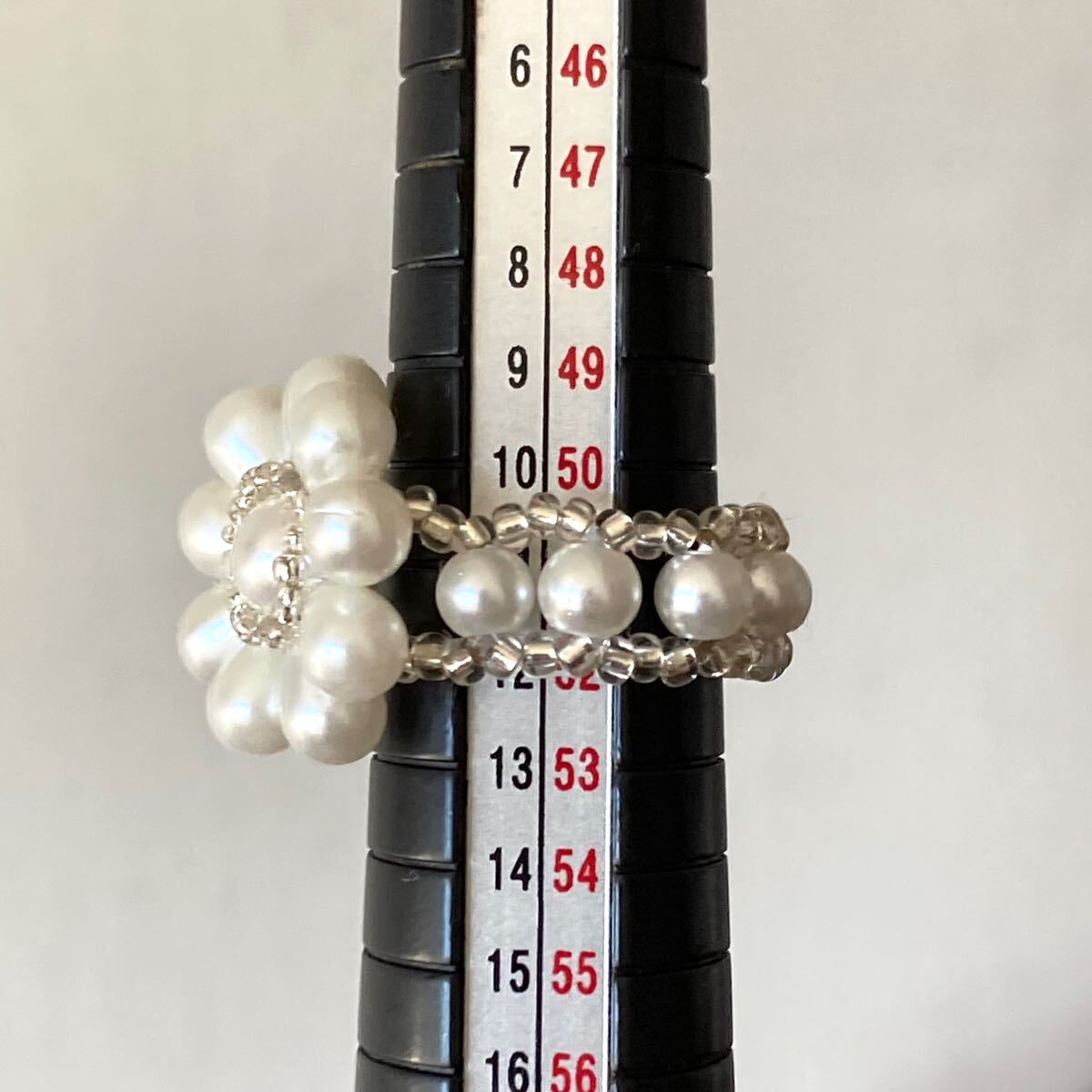 10-12号 ビーズ リング  パールのドロップビーズのお花風リング 白系
