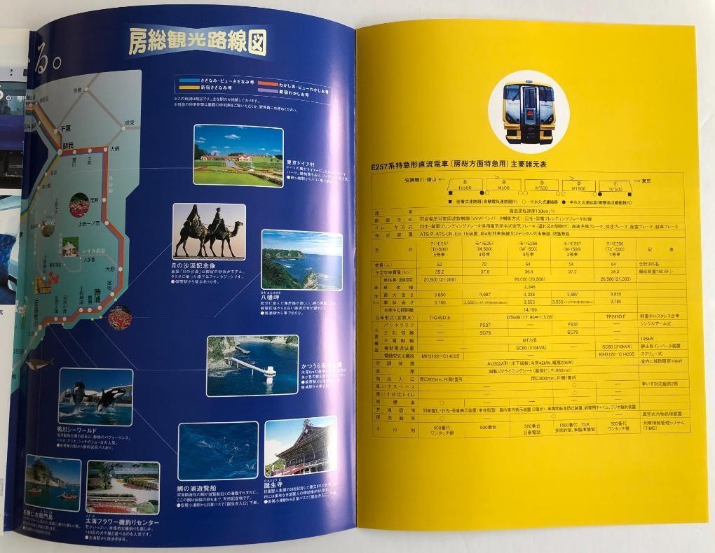 画像2、3枚目は中面です。車内の案内、房総の観光地の簡単な案内、E257系の主要諸元表の掲載があります。