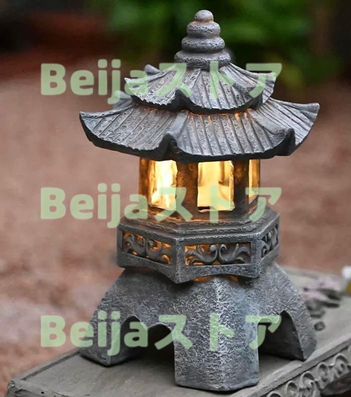 日本の屋外庭園 ソーラーランタン 樹脂像 タイプ F 和風 四角 四足 灯篭 庭飾り ガーデン 置物 オブジェ 枯山水 盆栽造園 盆栽飾り