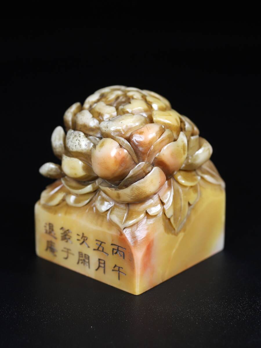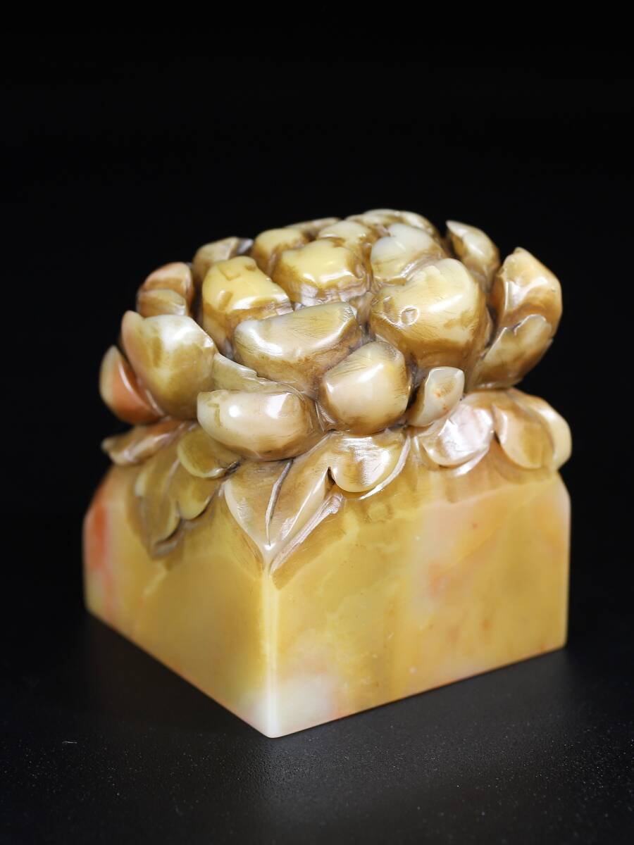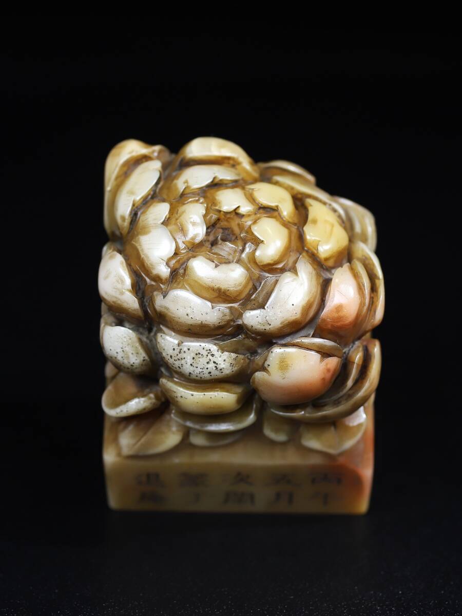 *珍品旧蔵* 清 壽山石 薄意印章 《花開富貴》 名人彫刻 閒章 印鑑 文房具 書道具 手彫り 篆刻 唐物 古賞物 中国古玩 ZK0113