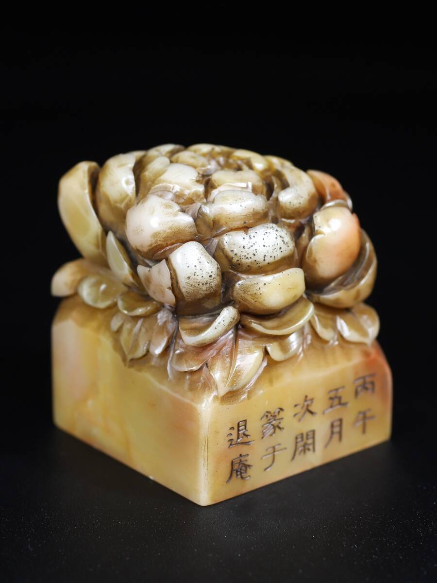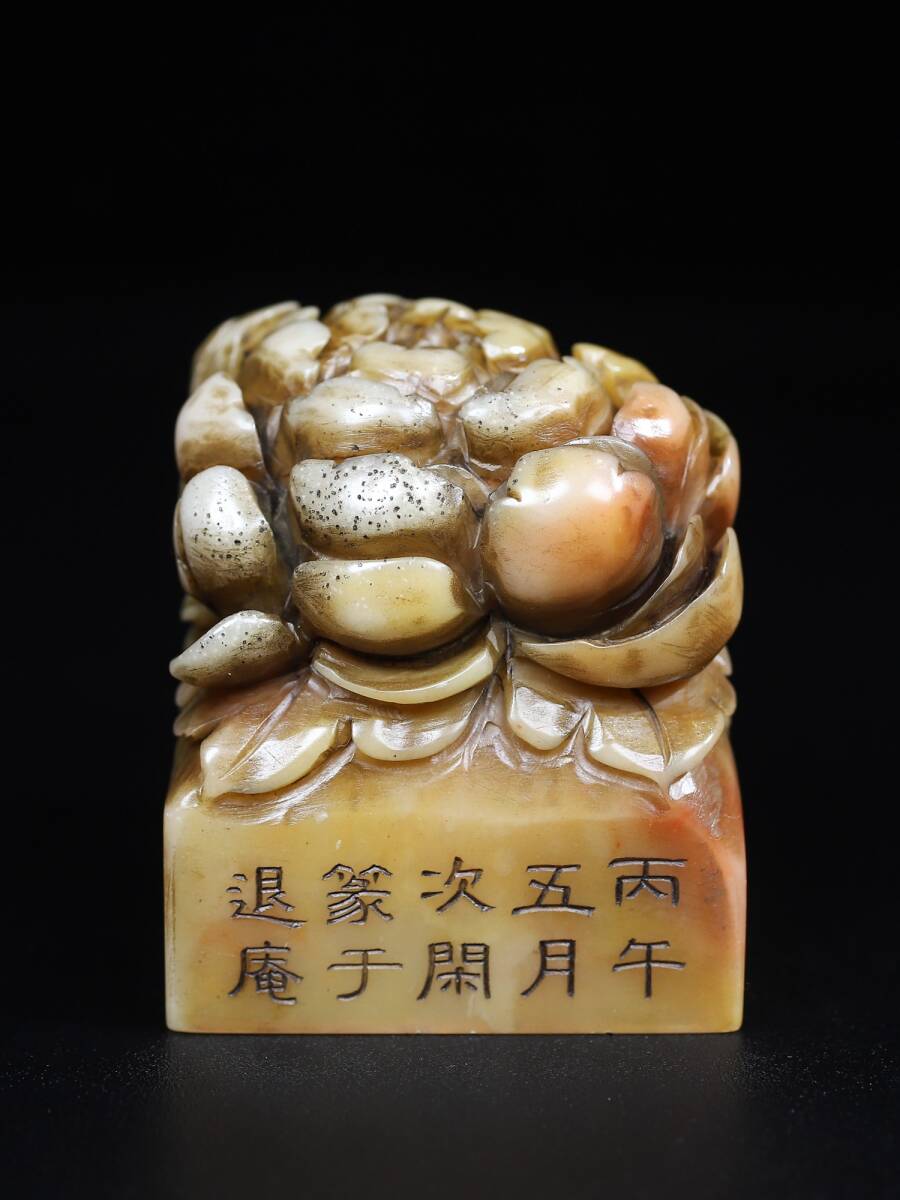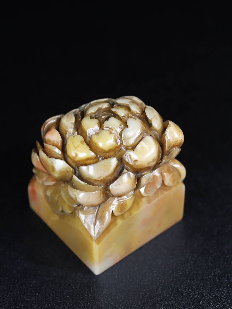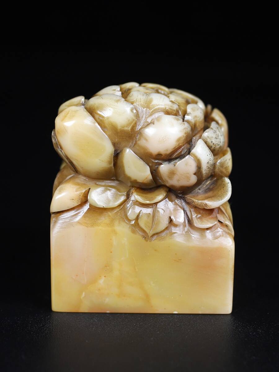 *珍品旧蔵* 清 壽山石 薄意印章 《花開富貴》 名人彫刻 閒章 印鑑 文房具 書道具 手彫り 篆刻 唐物 古賞物 中国古玩 ZK0113