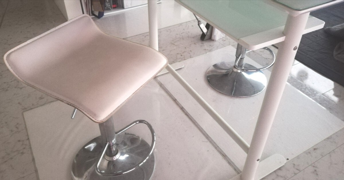 カウンターチェアのほうは、まだまだ使用できますが、かなりの使用感があり汚れ傷など目立ちますのでオマケ程度とお考えください、