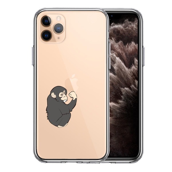 iPhone11 ケース クリア ゴリラ ガッツポーズ スマホケース 側面ソフト 背面ハード ハイブリッド