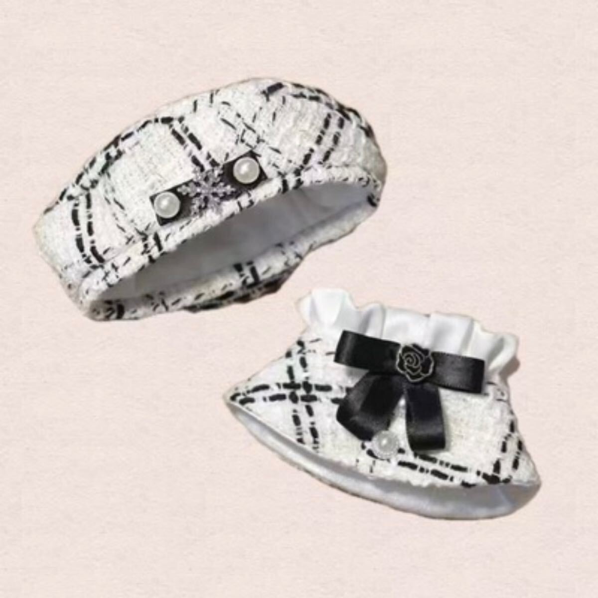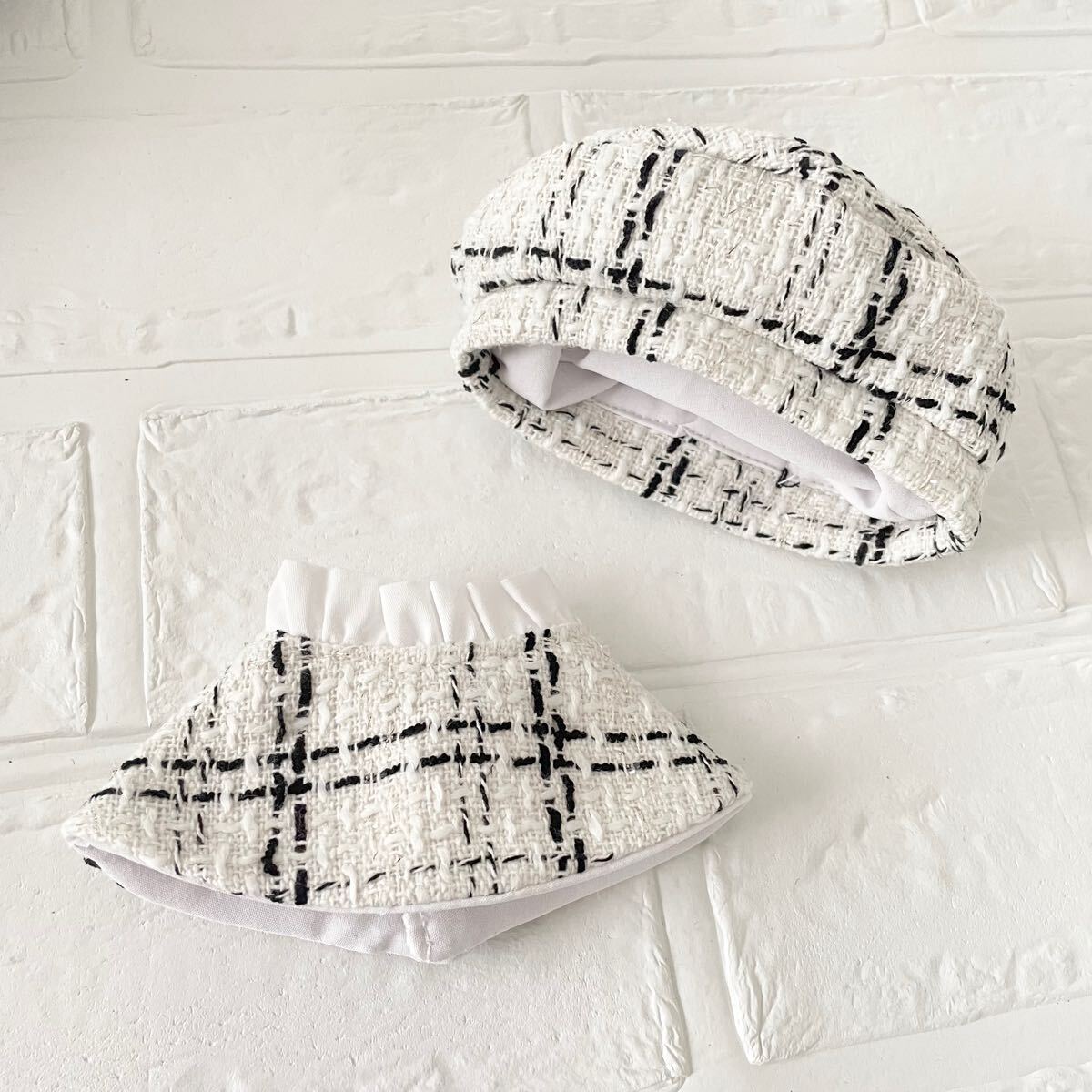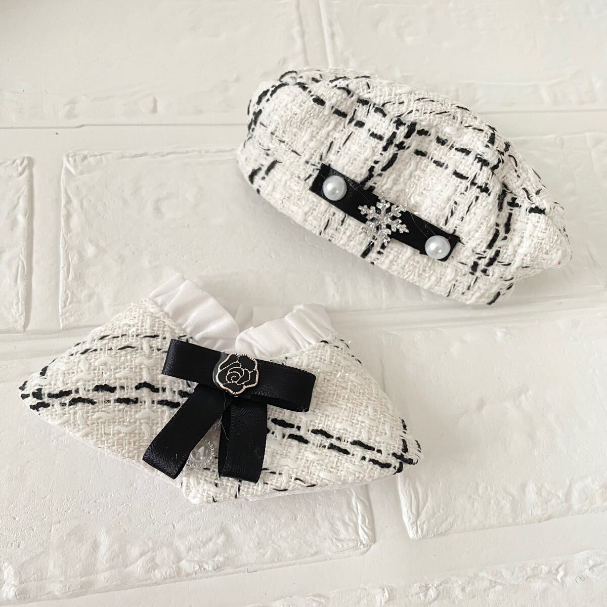 ぬいぐるみ用服 かわいい10〜12cm ツイード ベレー帽 チェック ポンチョ いつぬい ちびぐるみ 黒色