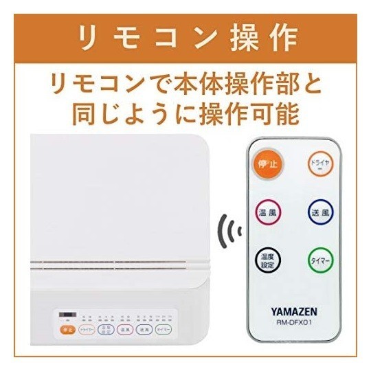 山善 新品 脱衣所温風ヒーター リモコン付 壁掛式 温風/送風切替 切タイマー付 DFX-RJ12(W) ドライヤー機能付 ホワイト 未使用品