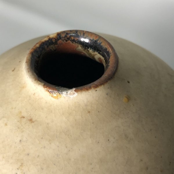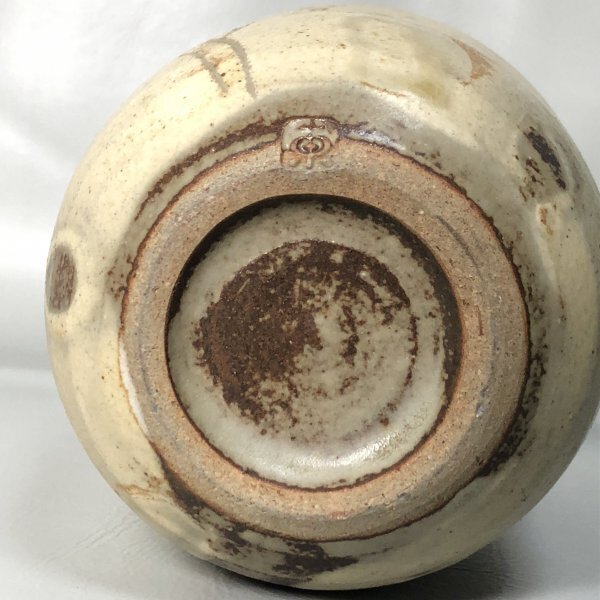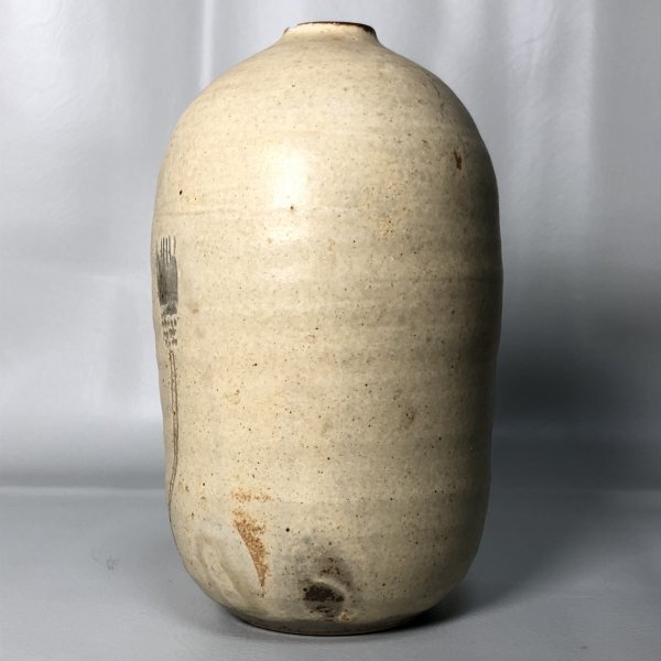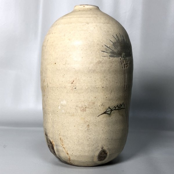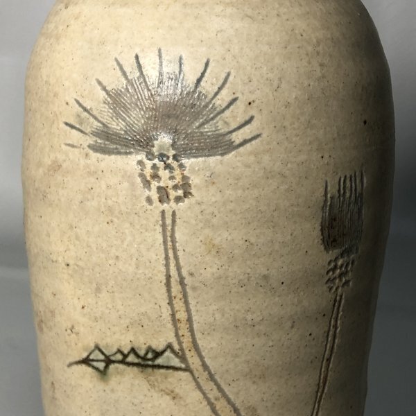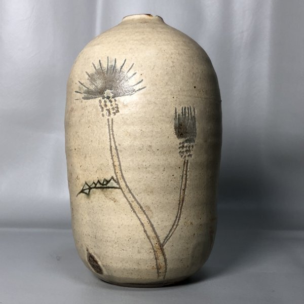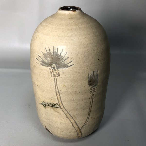 ▼小欠け有▼ 笠間焼 伊藤東彦 作 蒲公英文 たんぽぽ 綿毛 花瓶 高さ 約17cm 茶道具 花器 花入れ 一輪挿し 茶道 茶道具 陶器 陶芸 ■ 本242