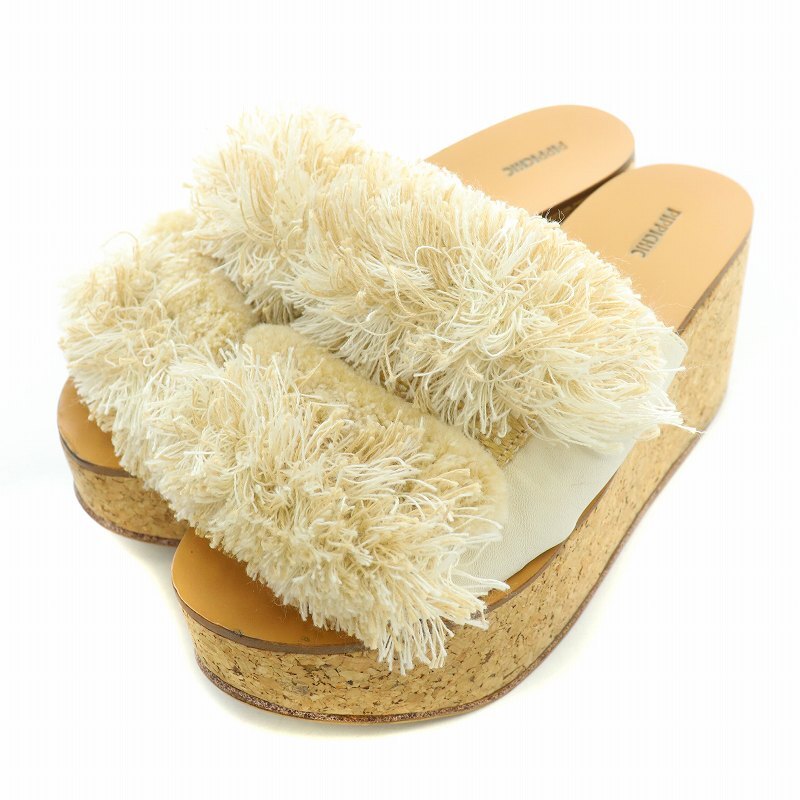 ピッピ Pippi サンダル ラウンドトゥ 厚底 フリンジ 装飾 白 ホワイト ベージュ 茶 ブラウン /BB レディース