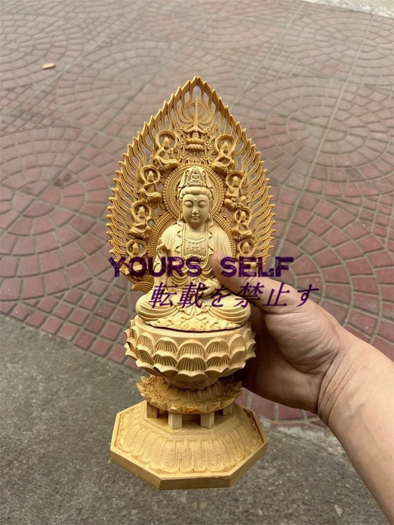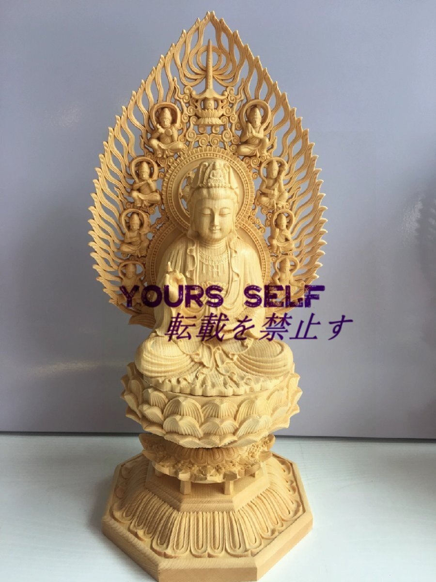 仏教美術 精密彫刻 仏像 手彫り 総檜材 仏師で仕上げ品 文殊菩薩 座像 珍品 高さ29cm