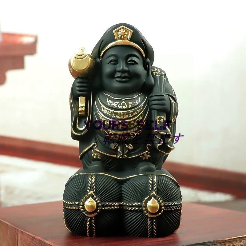 仏像 木彫 大黒天 大黒 大黒天木彫 彩繪 切金 彫刻工芸品 七福神 置物