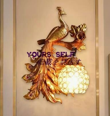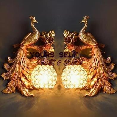稀少品◆ウォールライト照明 ベッドサイドライト クジャク 一対 雰囲気 壁掛け照明 室内装飾 リビング 壁掛けモダンライト