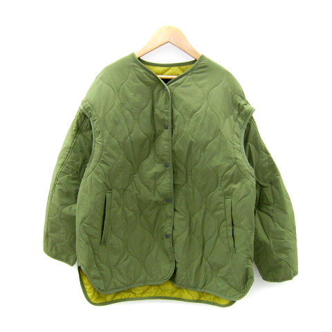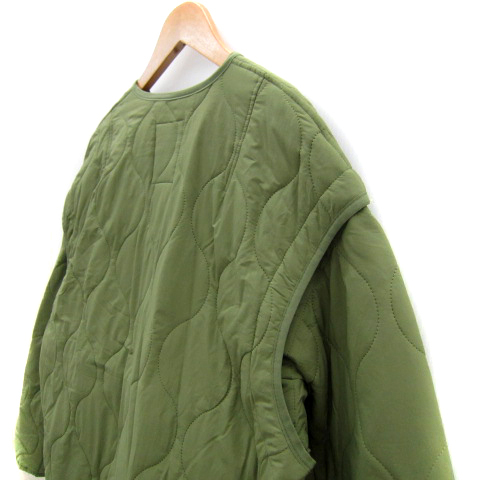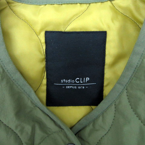 スタディオクリップ Studio Clip キルティングジャケット ベスト 2way ミドル丈 無地 F カーキ /SY6 レディース