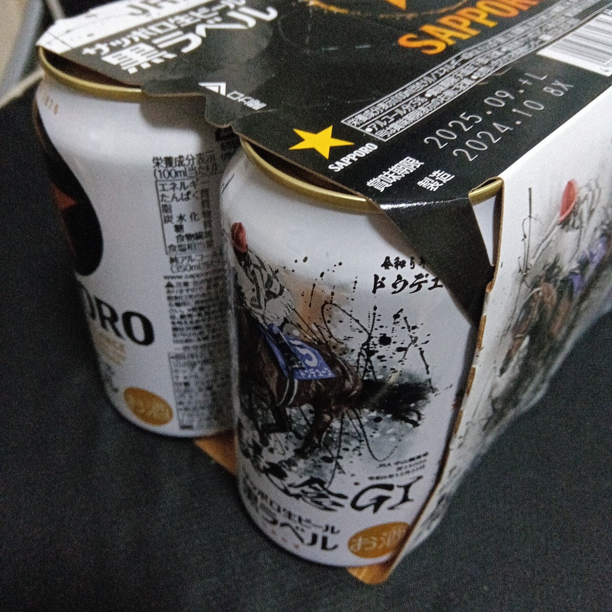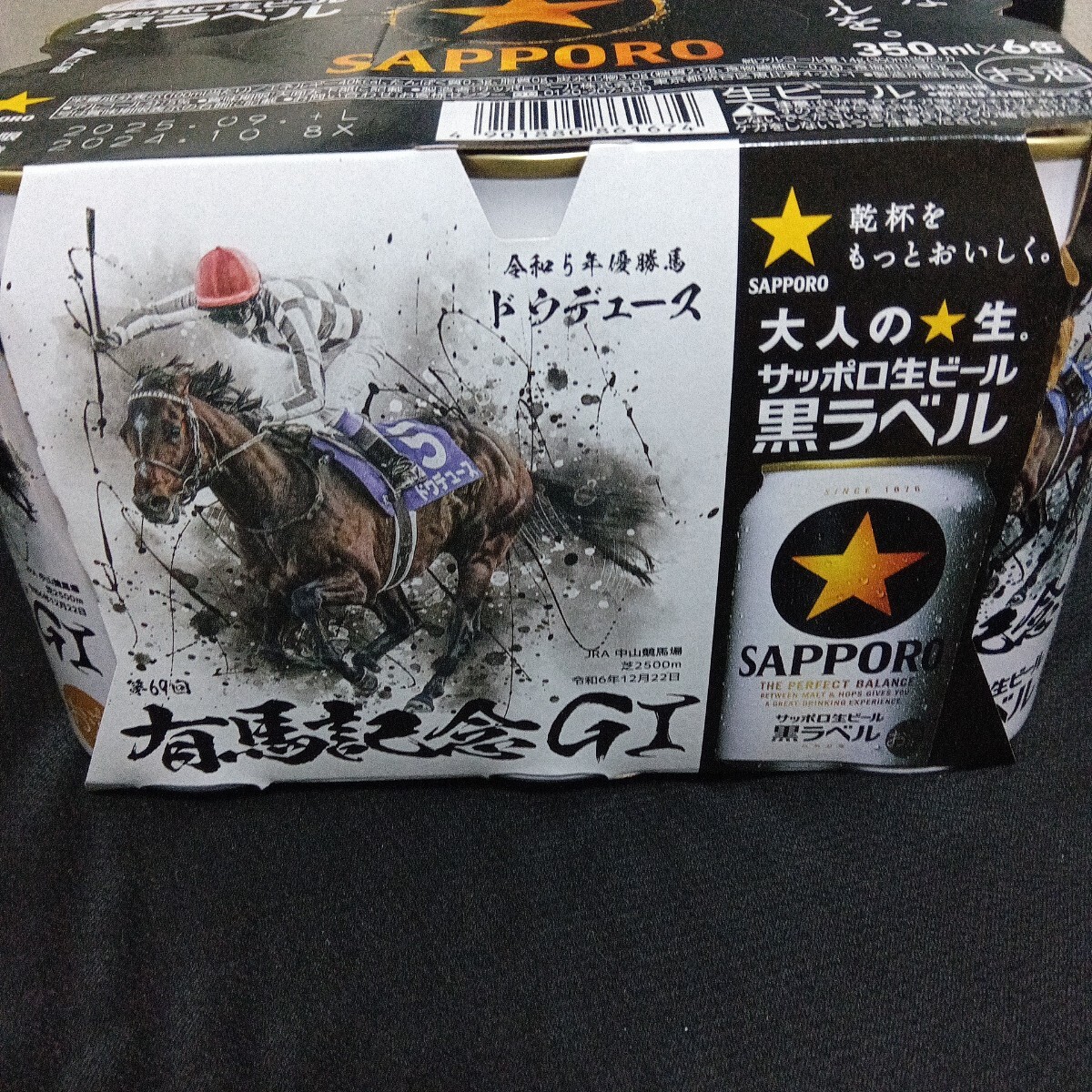 サッポロ黒ラベル 生ビール 6缶パック 有馬記念缶 ドウデュース 武豊騎手 限定 お酒 アルコール 競馬 ビール ジャパンカップ優勝年度代表馬 賞味期限9月までです