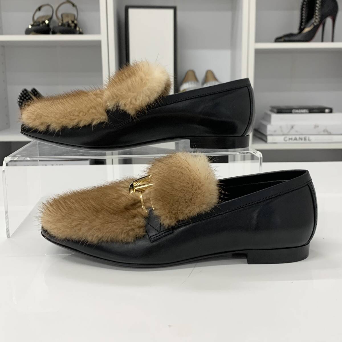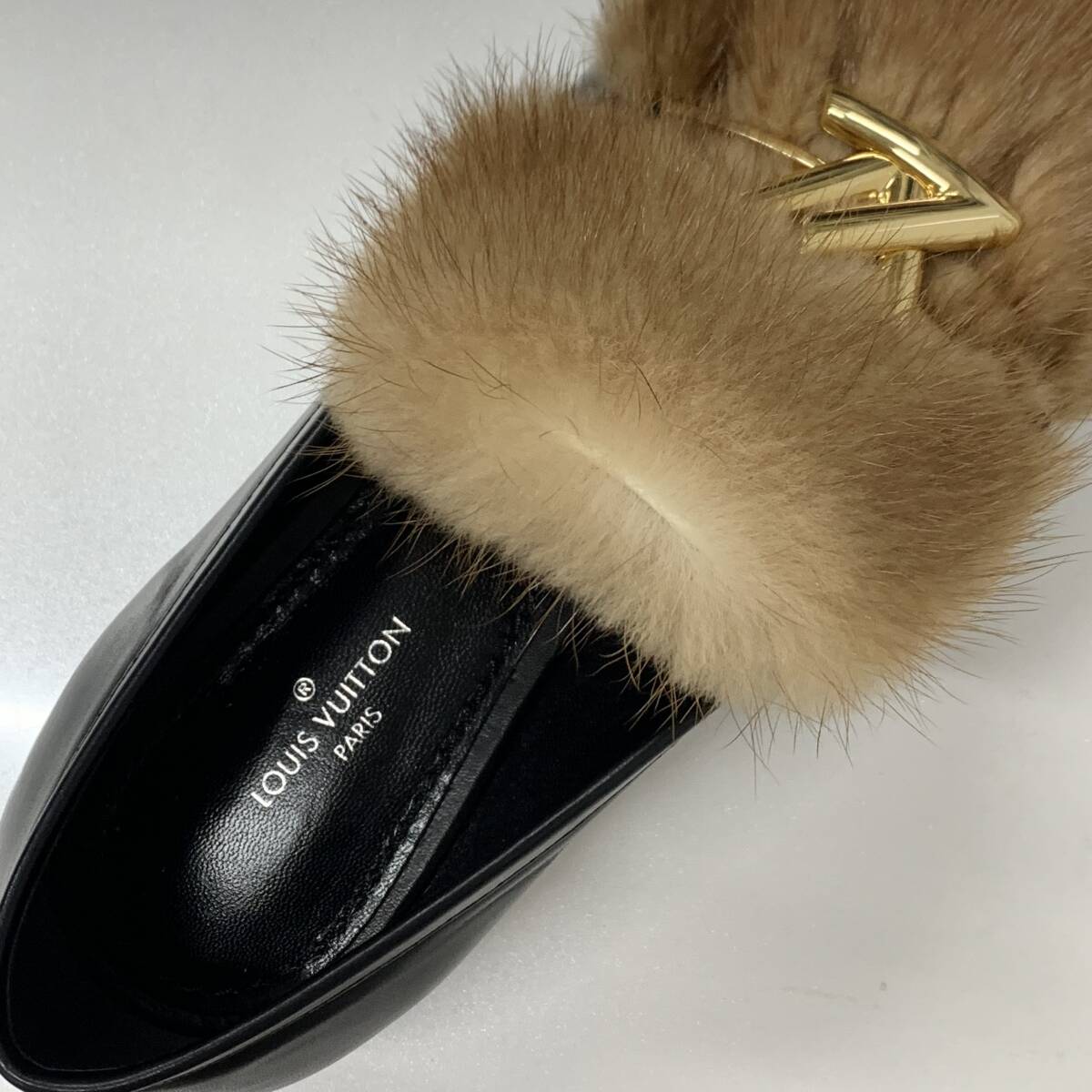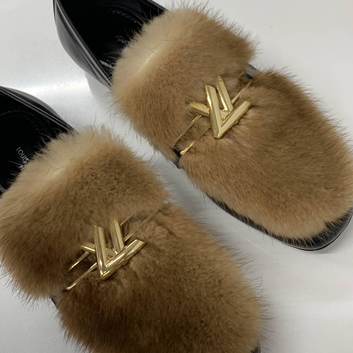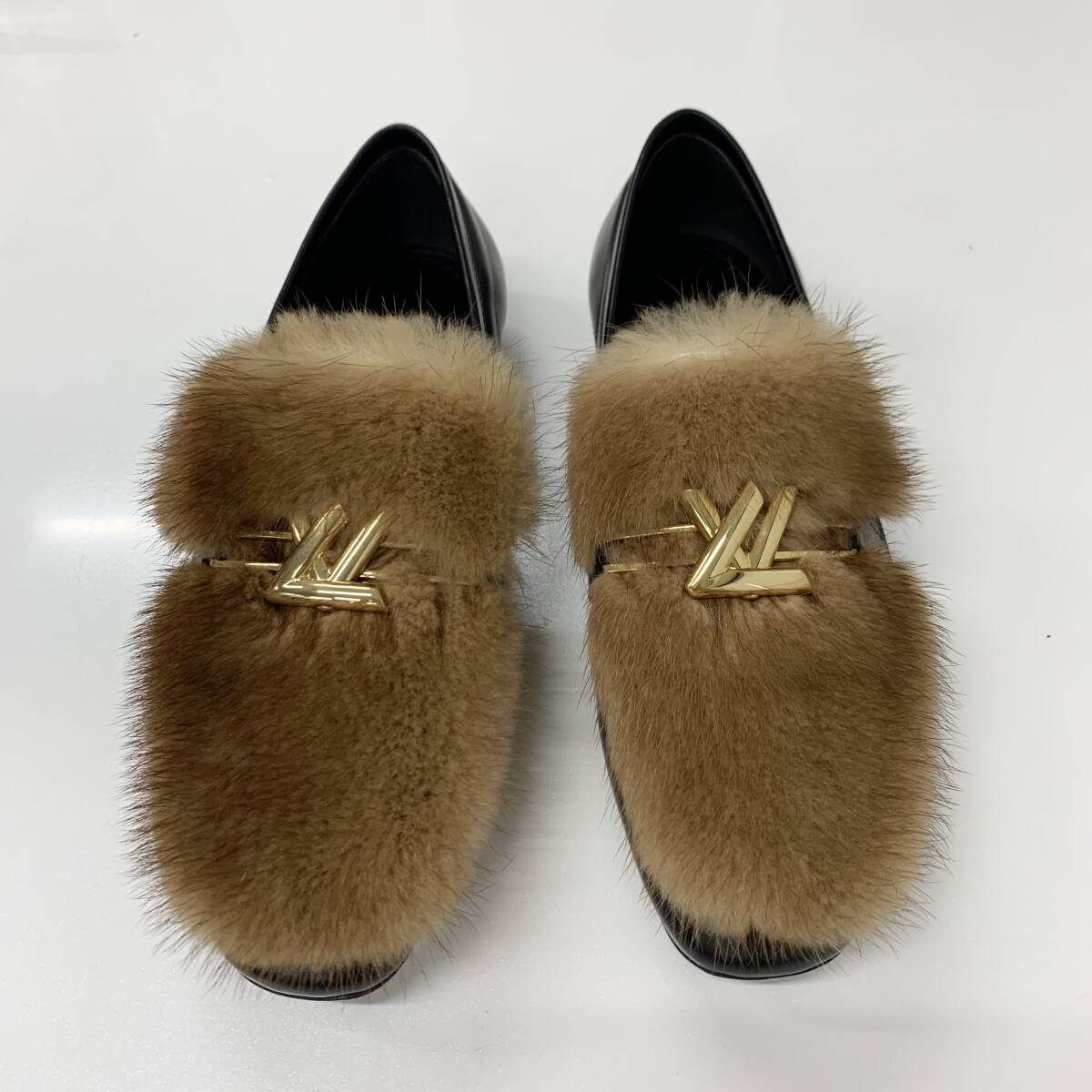 ヴィトン アッパーケースライン レザー ミンク ファー ローファー ブラウン ブラック