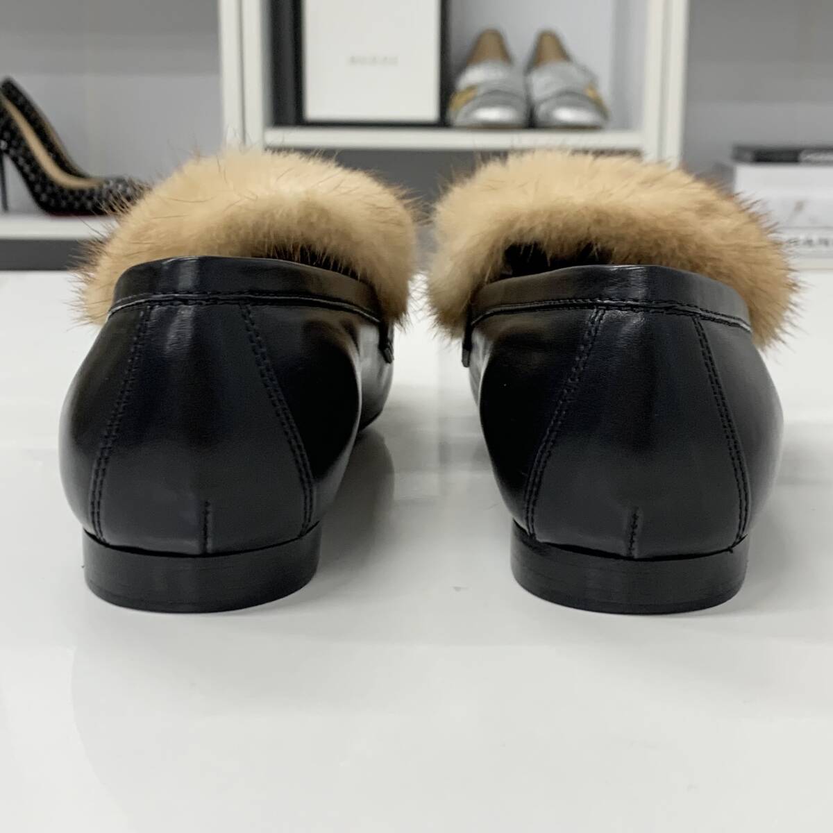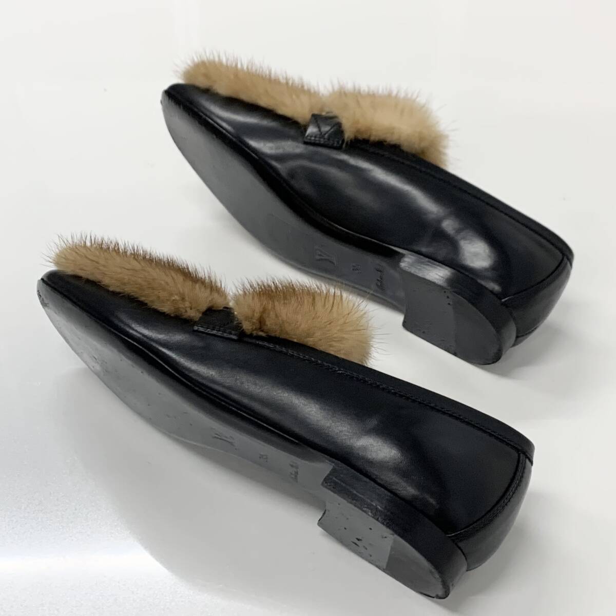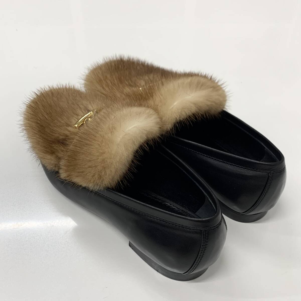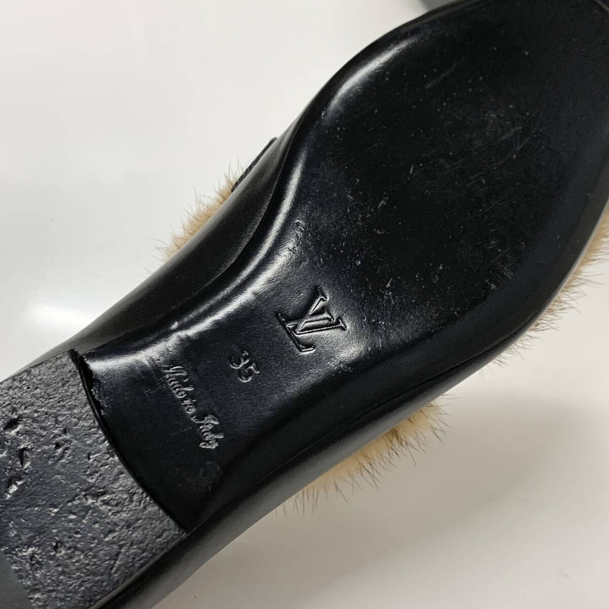 ヴィトン アッパーケースライン レザー ミンク ファー ローファー ブラウン ブラック