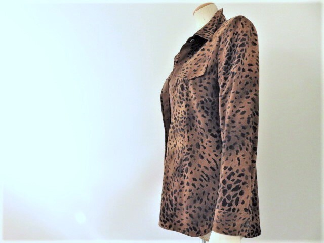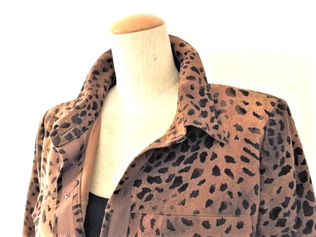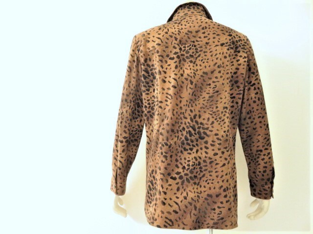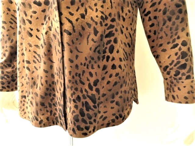 ■新品同様 上質美品【Leilian】レリアン 高級 人工皮革 豹柄 ブラウス シャツ 大きめ 9号 11号 送料185円 スェード素材 w1200