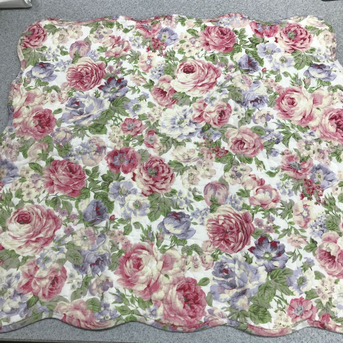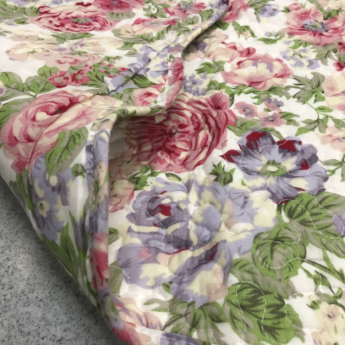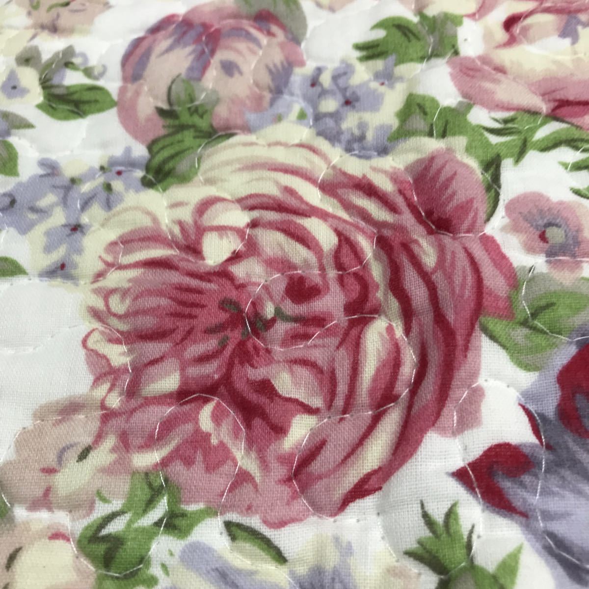 キルト生地 バラ柄の座布団カバーです。綿素材のキルト生地の手触りの感触が良いカバーです。表は