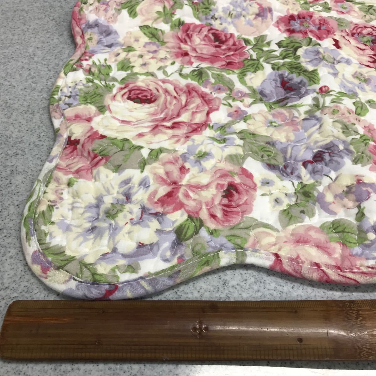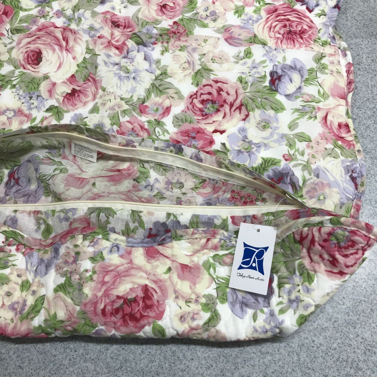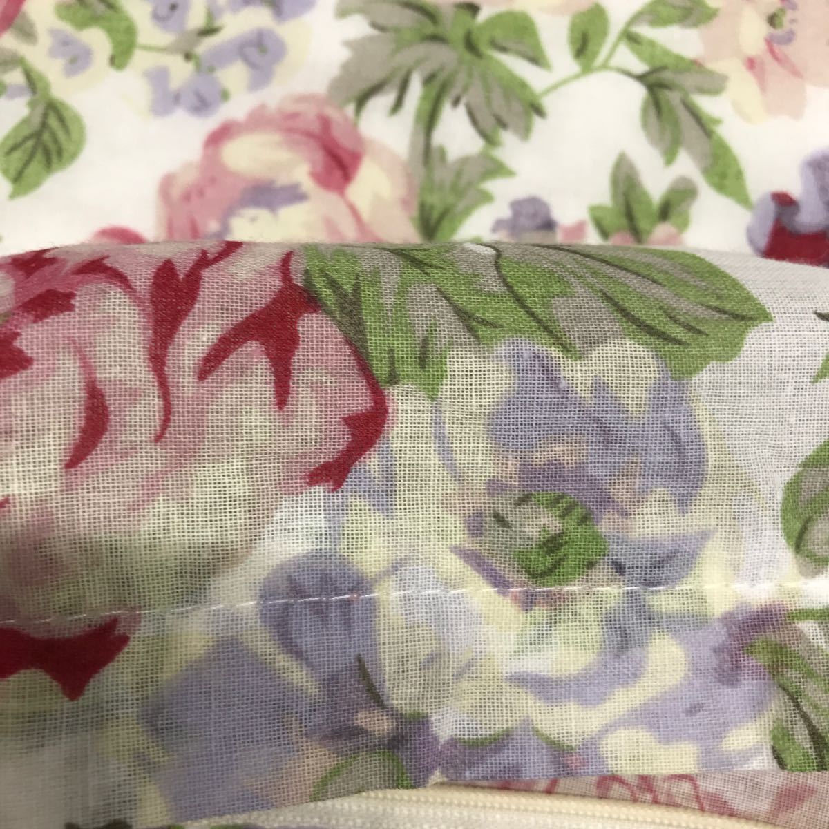 キルト生地 バラ柄の座布団カバーです。綿素材のキルト生地の手触りの感触が良いカバーです。表は