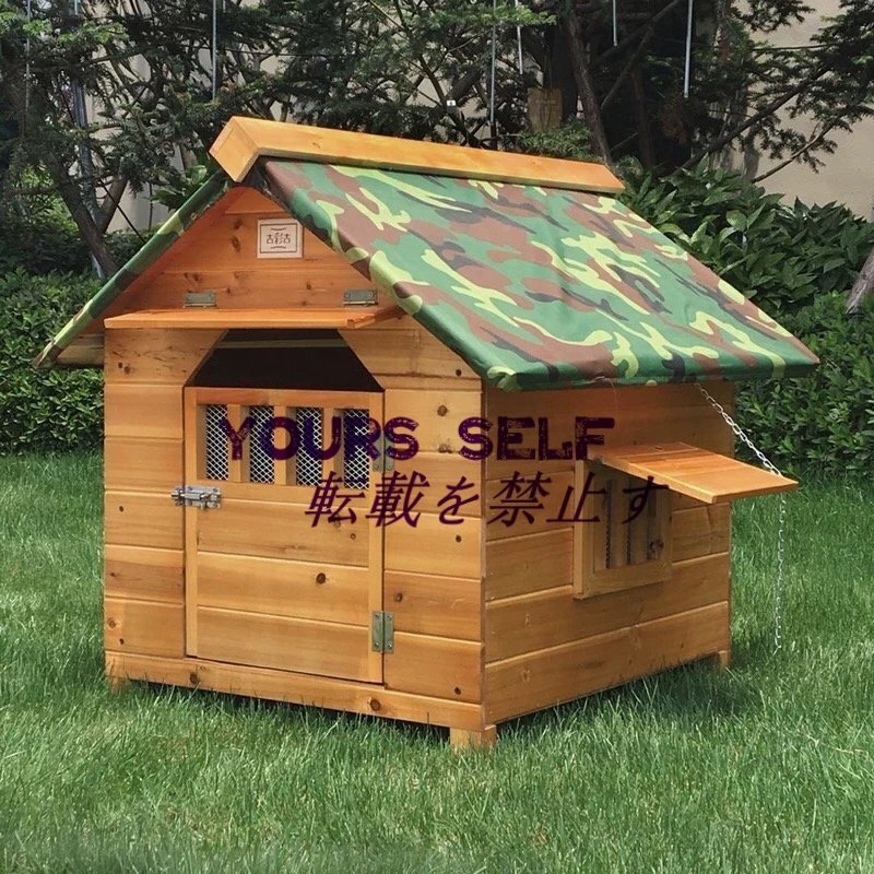 豪華別荘 中型/大型犬用 ペットハウス 犬小屋ハウス おうち 屋外庭用 防水 ドア 窓 ベランダ 日よけ 表札 屋上ズックカバー付属