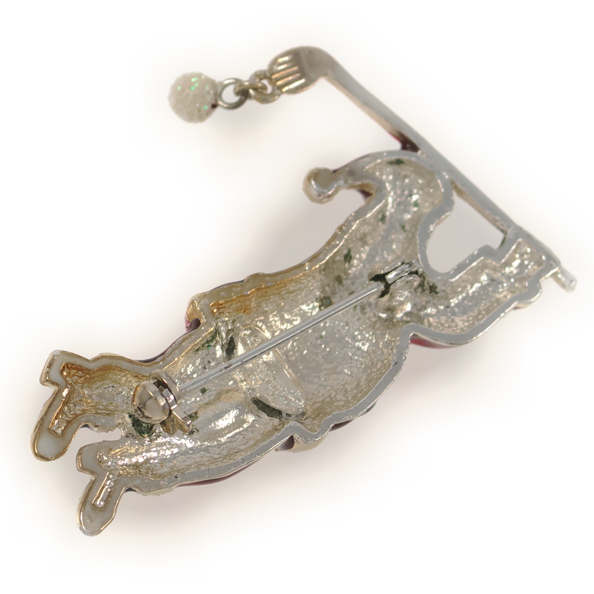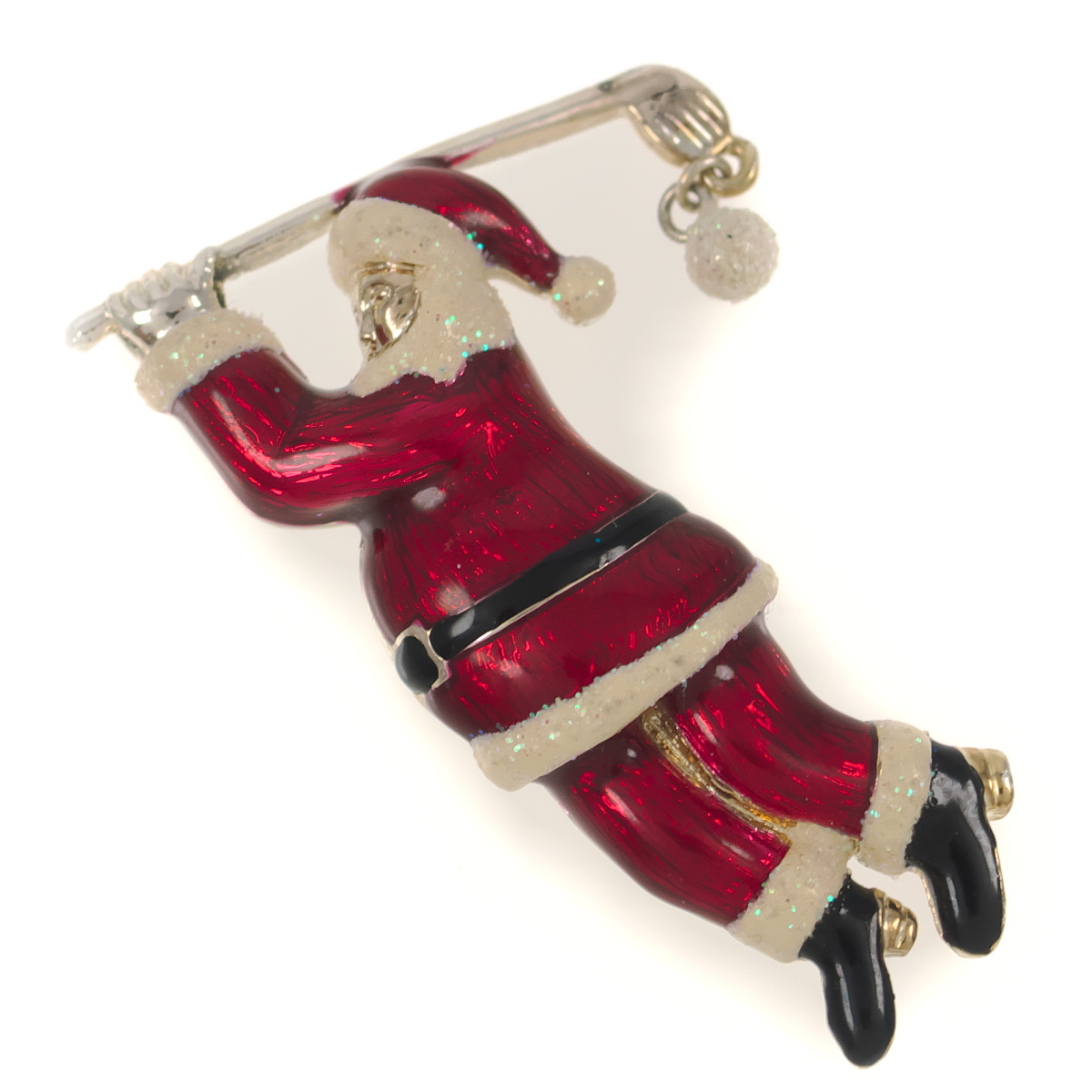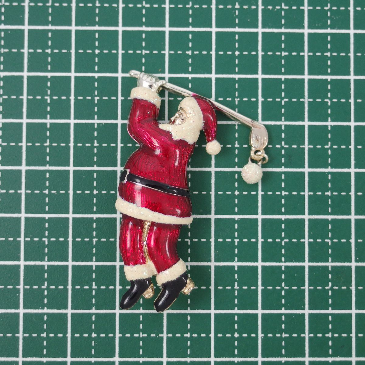 A10369◆【DANECRAFT】◆ ゴルフをするサンタクロース エナメルペイント クリスマス ◆ ヴィンテージブローチ ◆