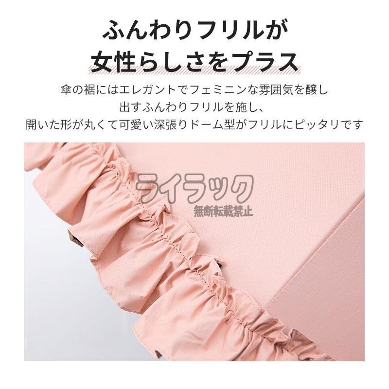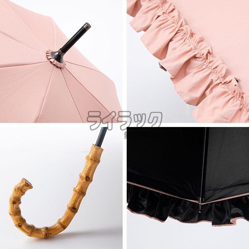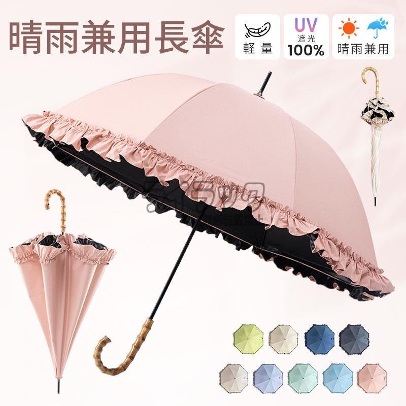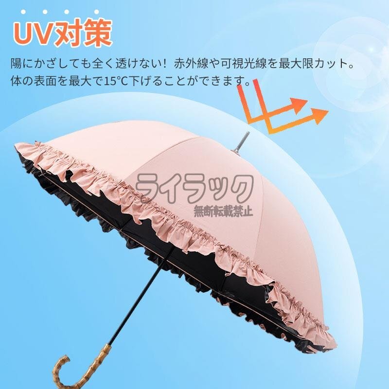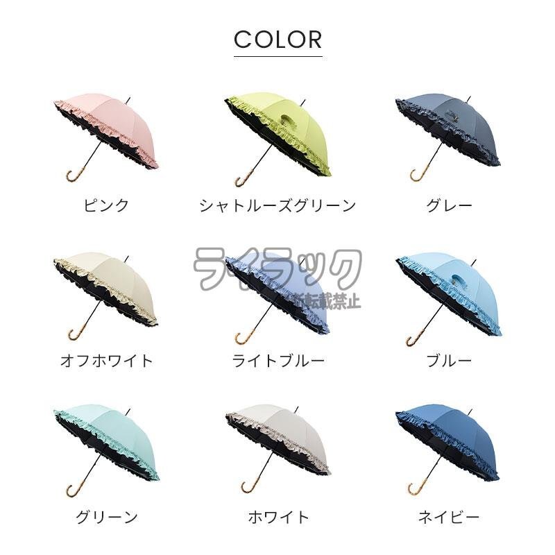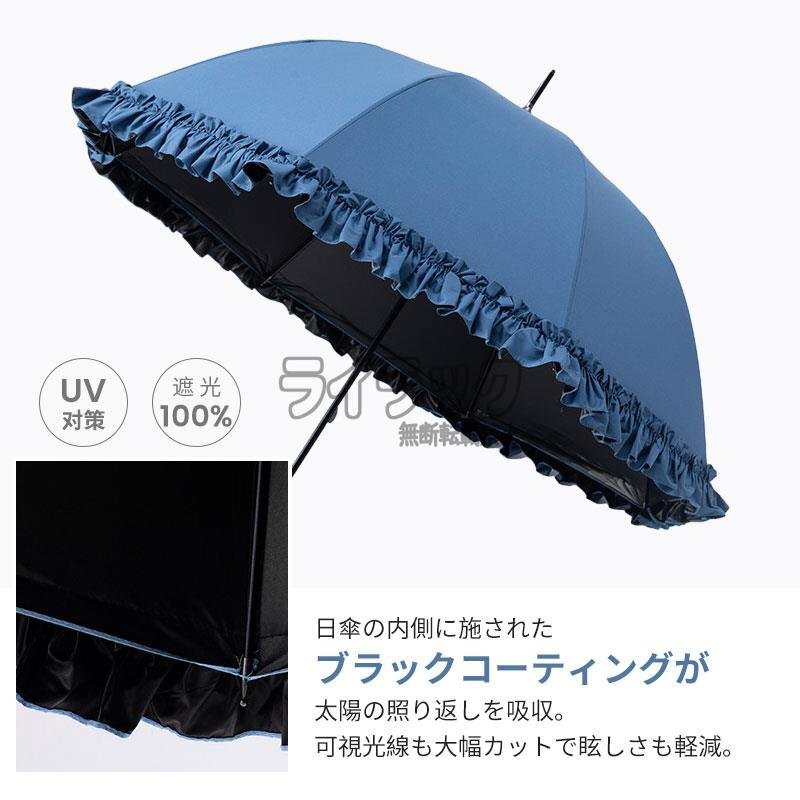 日傘 完全 遮光 UVカット 遮光率 100% フリル傘 ライン傘 晴雨兼用 長傘 レディース傘 ヒートカット傘 遮光 紫外線 軽量 撥水 9色選択可