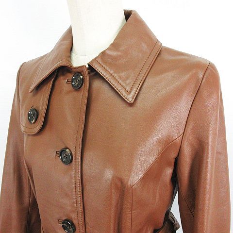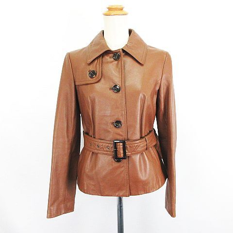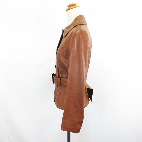 23区 オンワード樫山 レザージャケット 長袖 ステンカラー ラム 38 ブラウン ※EKM レディース