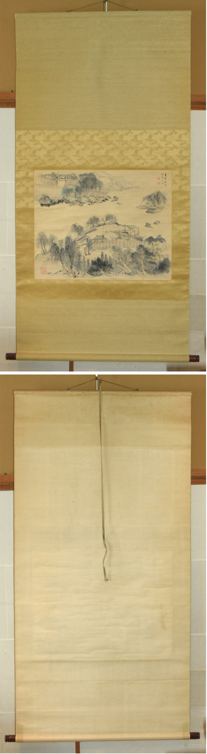 軸 横幅:42㎝ 長さ:132㎝ 本紙 横幅:72㎝ 長さ:52㎝ |