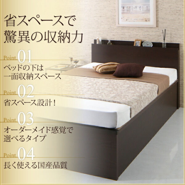 お客様組立 国産跳ね上げ収納ベッド ダークブラウン マルチラススーパースプリングマットレス付き 横開き セミダブル 深さグランド