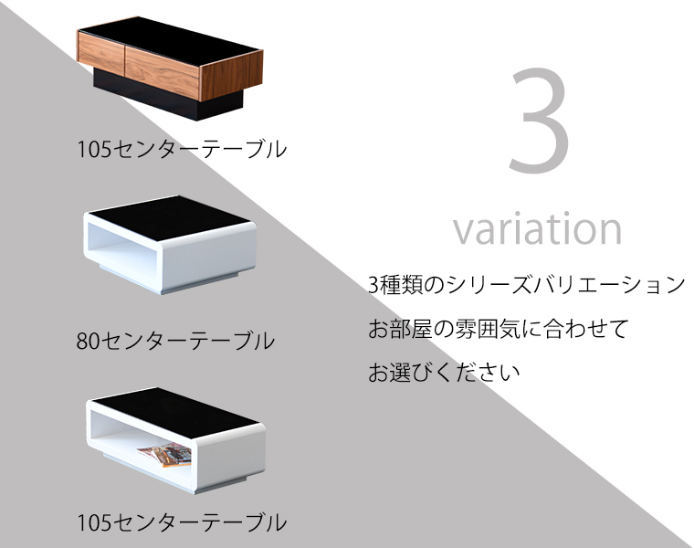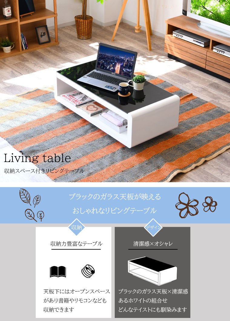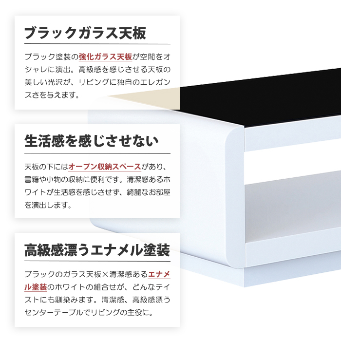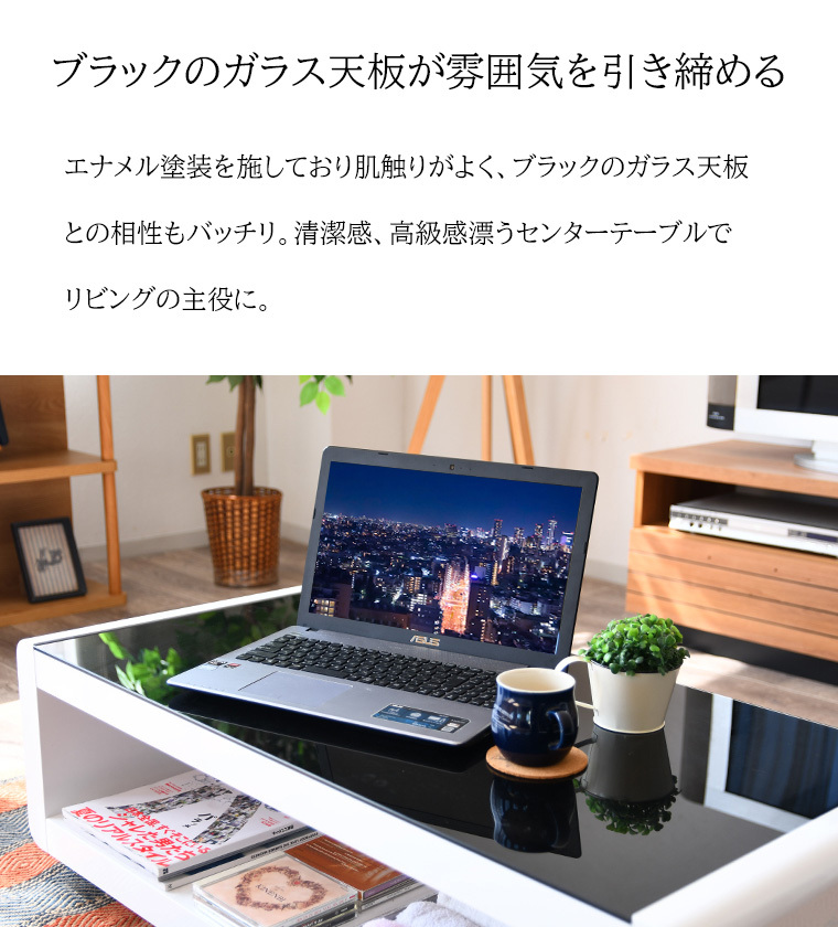 特  徴スタイリッシュなブラックガラス、生活感を感じさせないデザインで、洗練された空間を演出するセンターテーブル。