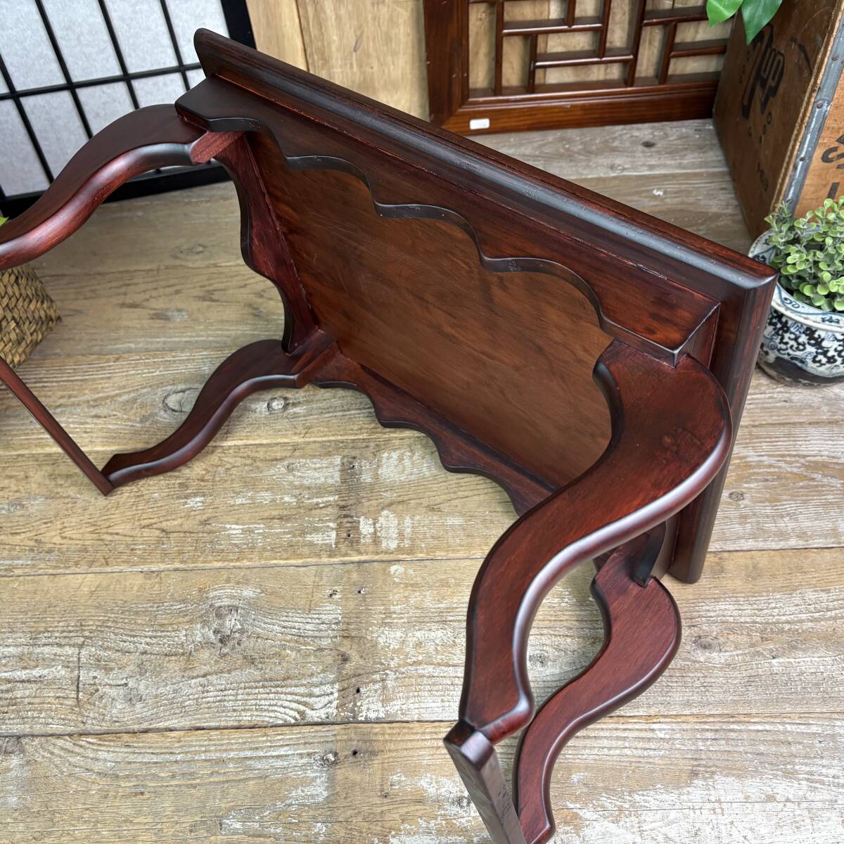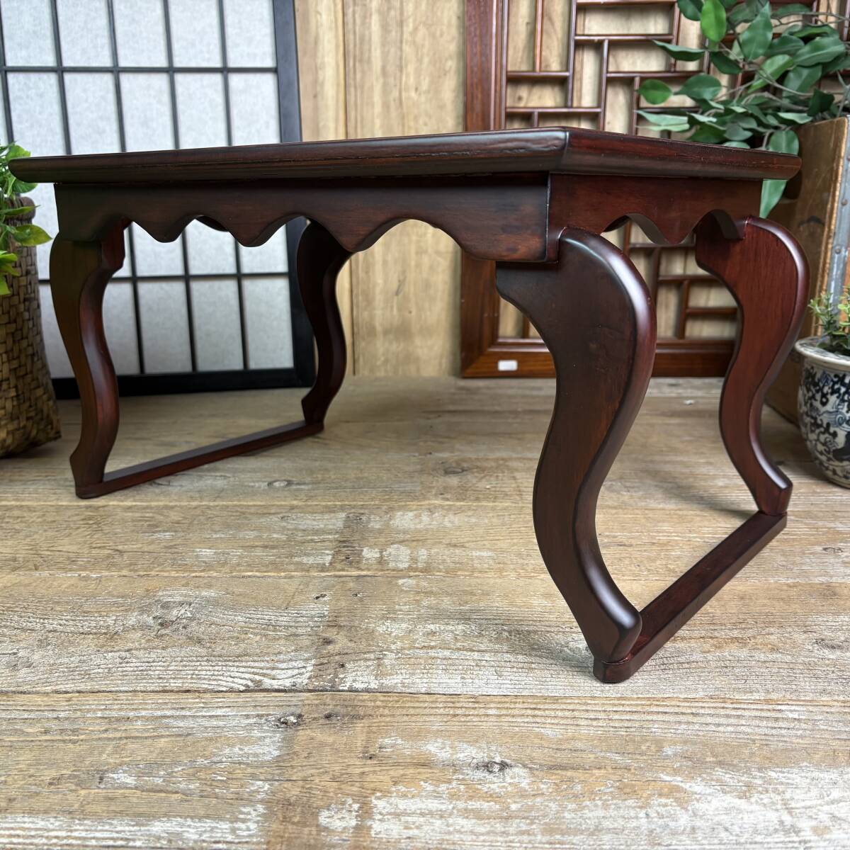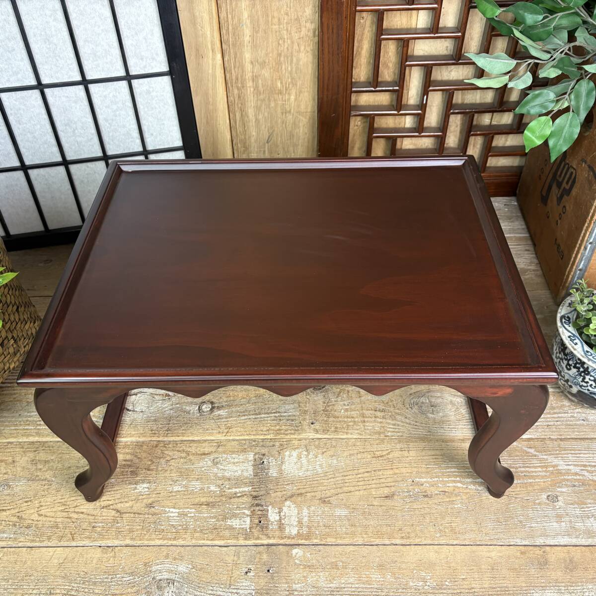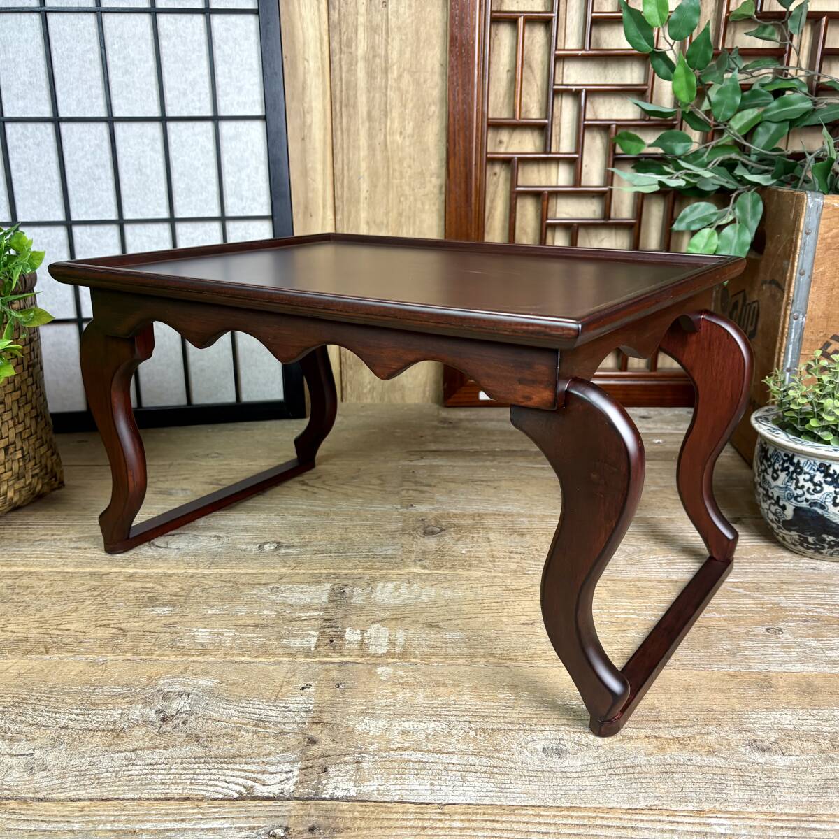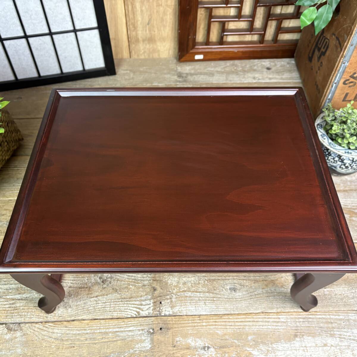 李朝長角お膳 木製長角お膳ティーテーブルです。深みのある暗めのブラウンになります。李朝、韓国、中国のアンティークビンテージ調で素敵なソバンです。韓国ドラマなどで人気の李朝家具調の伝統あるデザイン!モダンインテリアのアクセントになる商品です。猫足がおしゃれで、ティーテーブルやお膳としてはもちろん、花台などにもピッタリです!こちらの商品は光沢の少ないマット加工になり、高級感のある仕上がりになっております。アジアンテイストインテリアや和室にもぴったりです。人気のソバンシリーズ新商品入荷しました!他では買えない商品をぜひこの機会に。 【商品状態説明】 小キズ少々の色むらあり、まずまずの美品。 完成品になります、折りたたみ不可。 ※こちらの商品は新品未使用です。 商品の画像は現品画像ではありませんが、丁寧に検品し、商品を発送させて頂きます。 【サイズ】 横幅:45㎝(天板) 高さ:27㎝ ※足部分横幅約50㎝ 【素材】 木製楡材 ウレタン塗装 【カラー】 ブラウン 【完品参考価格】 ¥14.000 | ◆◇発送方法◇◆ ●送料は基本無料ですが、沖縄・離島などにお住まいの方はご負担ください。 (沖縄・離島の方はメールにてご連絡いただければ、送料をお知らせいたします。) ●ヤマト運輸・佐川急便・第一貨物のいずれかにて配送いたします。 (運送会社の指定はできません。ご了承ください。) ●日時・時間指定のある方や、お問い合わせ(追跡)番号をご希望の方は取引連絡の際にお知らせください。 | |
