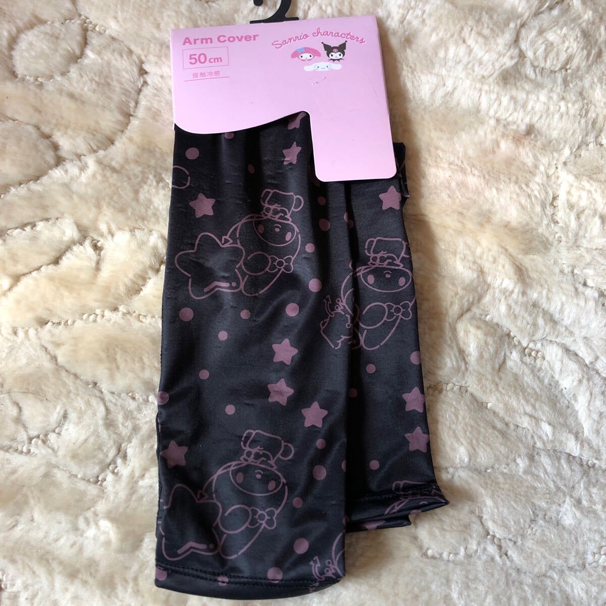 サンリオキャラクターのデザインが施された、接触冷感のアームカバー。