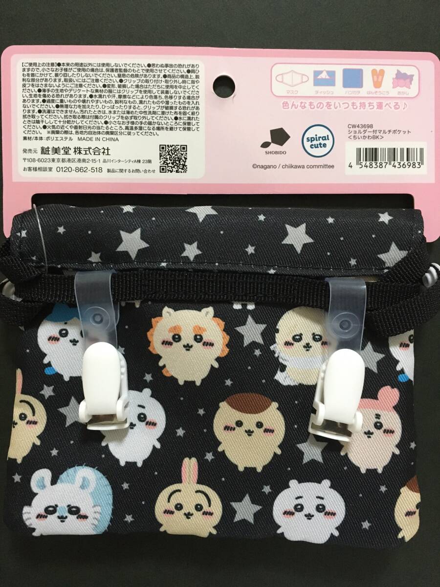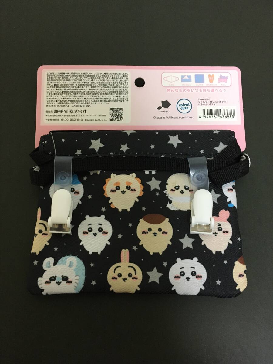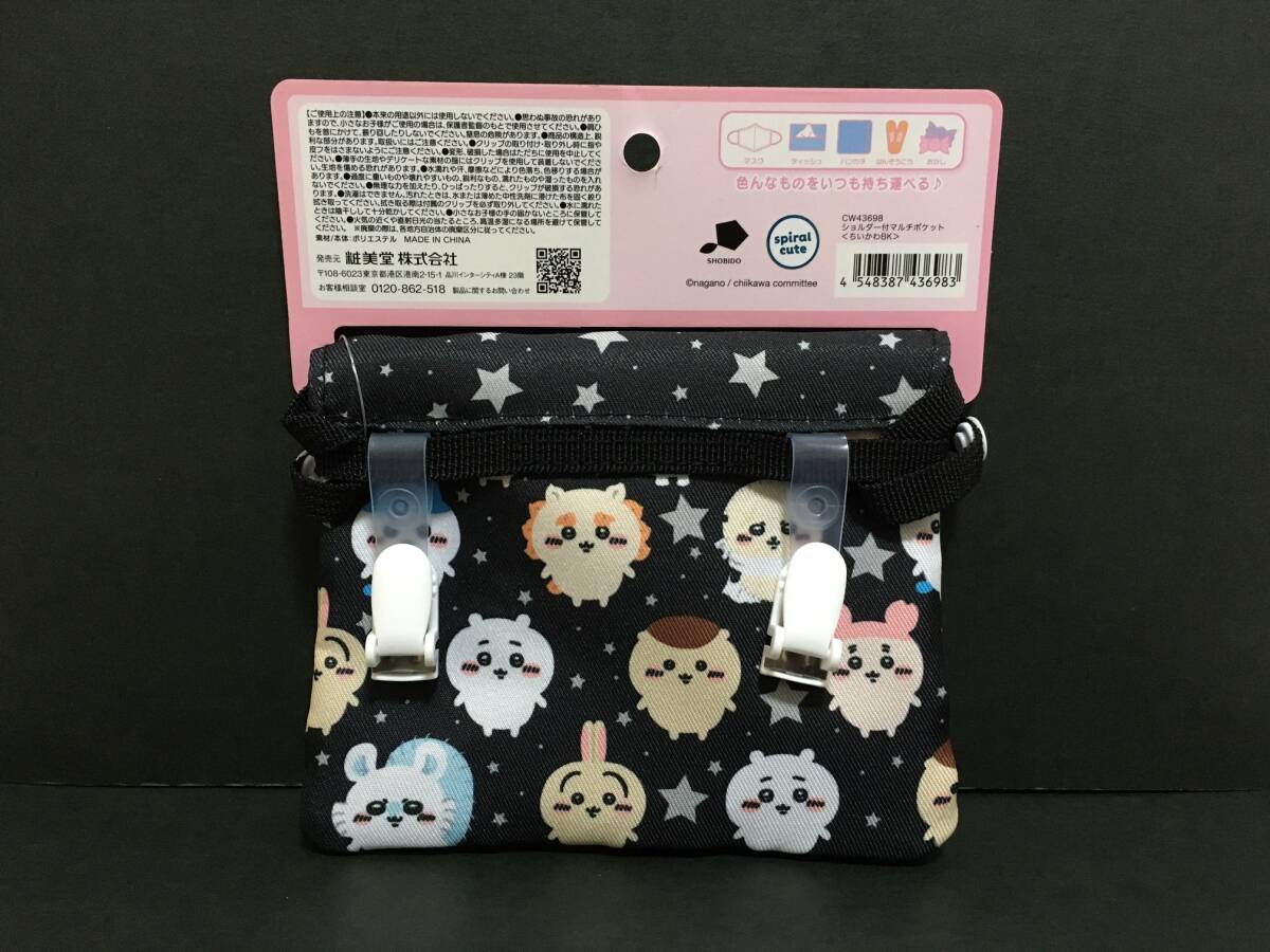 CHIIKAWA/ちいかわ ショルダー付マルチポケット☆彡 ブラック☆ クリップポーチ マルチケース 新品 粧美堂