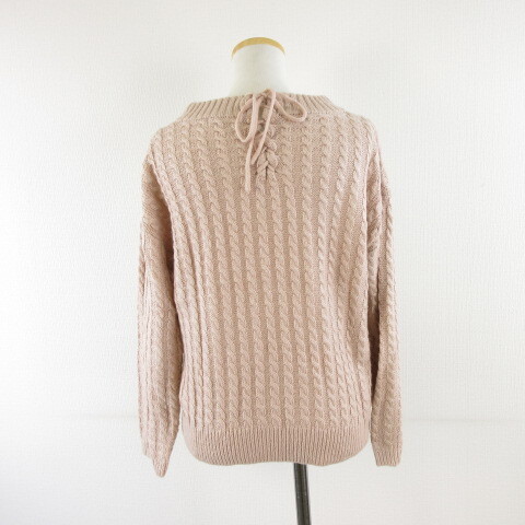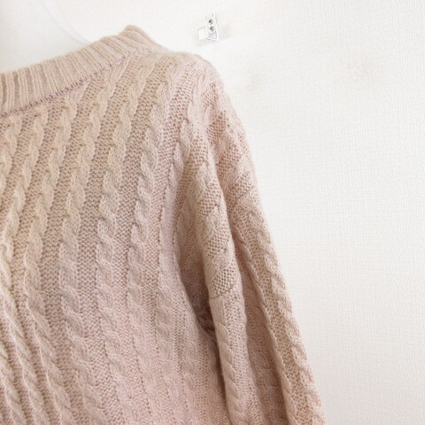 アースミュージック&エコロジー EARTH MUSIC & ECOLOGY Premium Label ケーブルニット セーター 長袖 ピンク F *A688 レディース