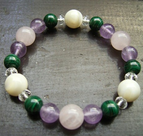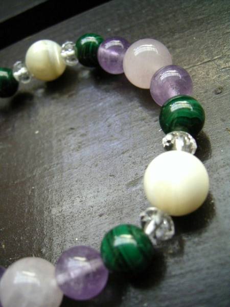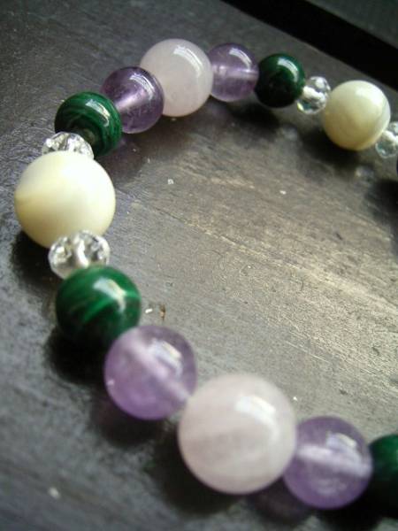 孔雀石xローズクォーツx白蝶貝ブレスレット 天然石 パワーストーン